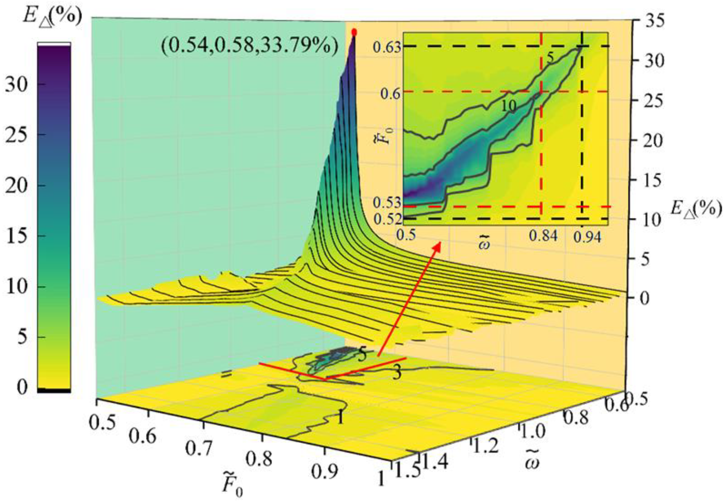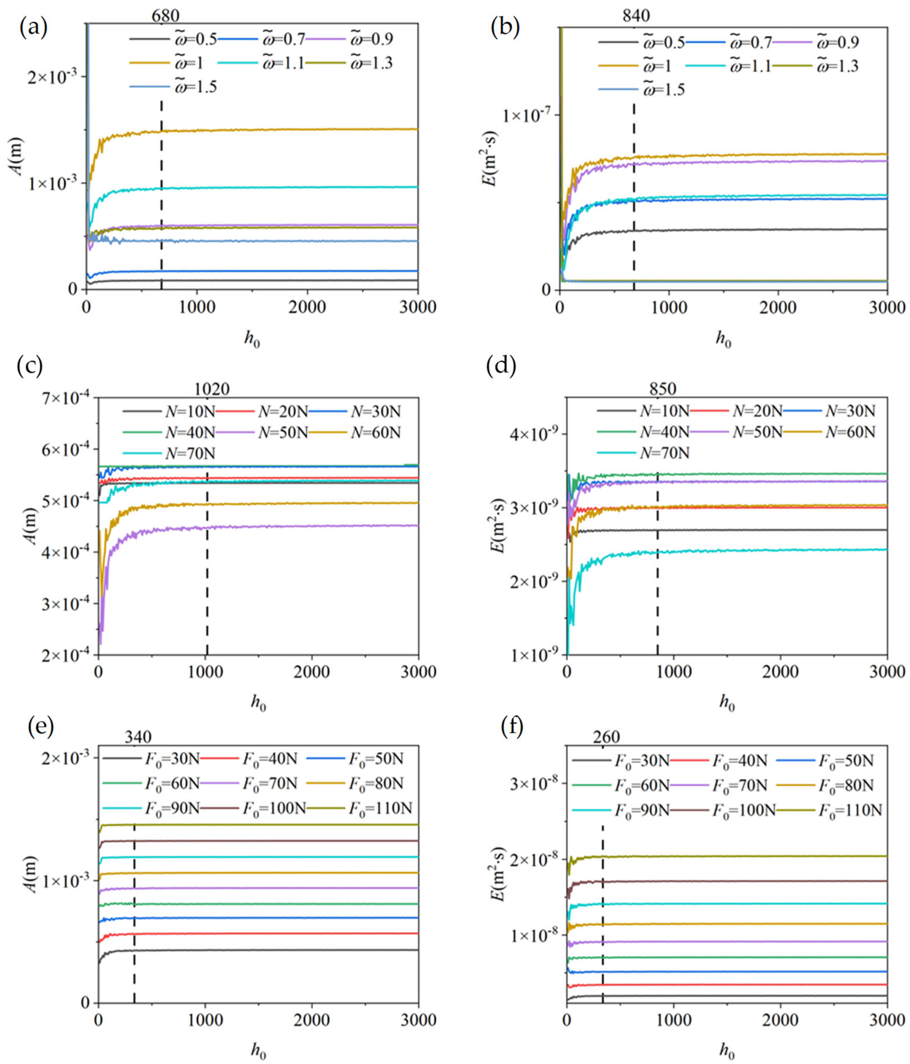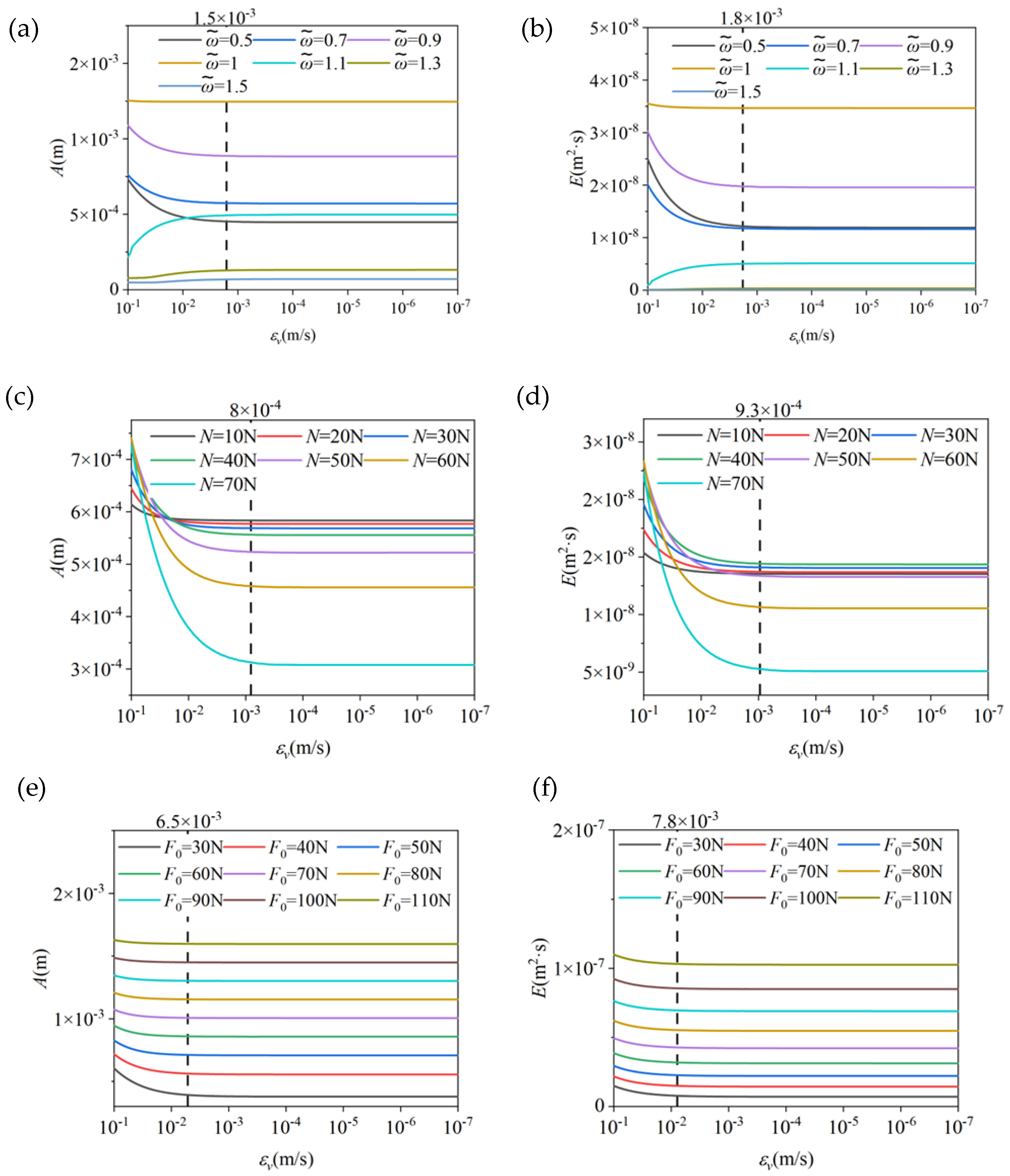 | Displacement amplitude corresponding to varying | Vibration energy corresponding to varying | ||