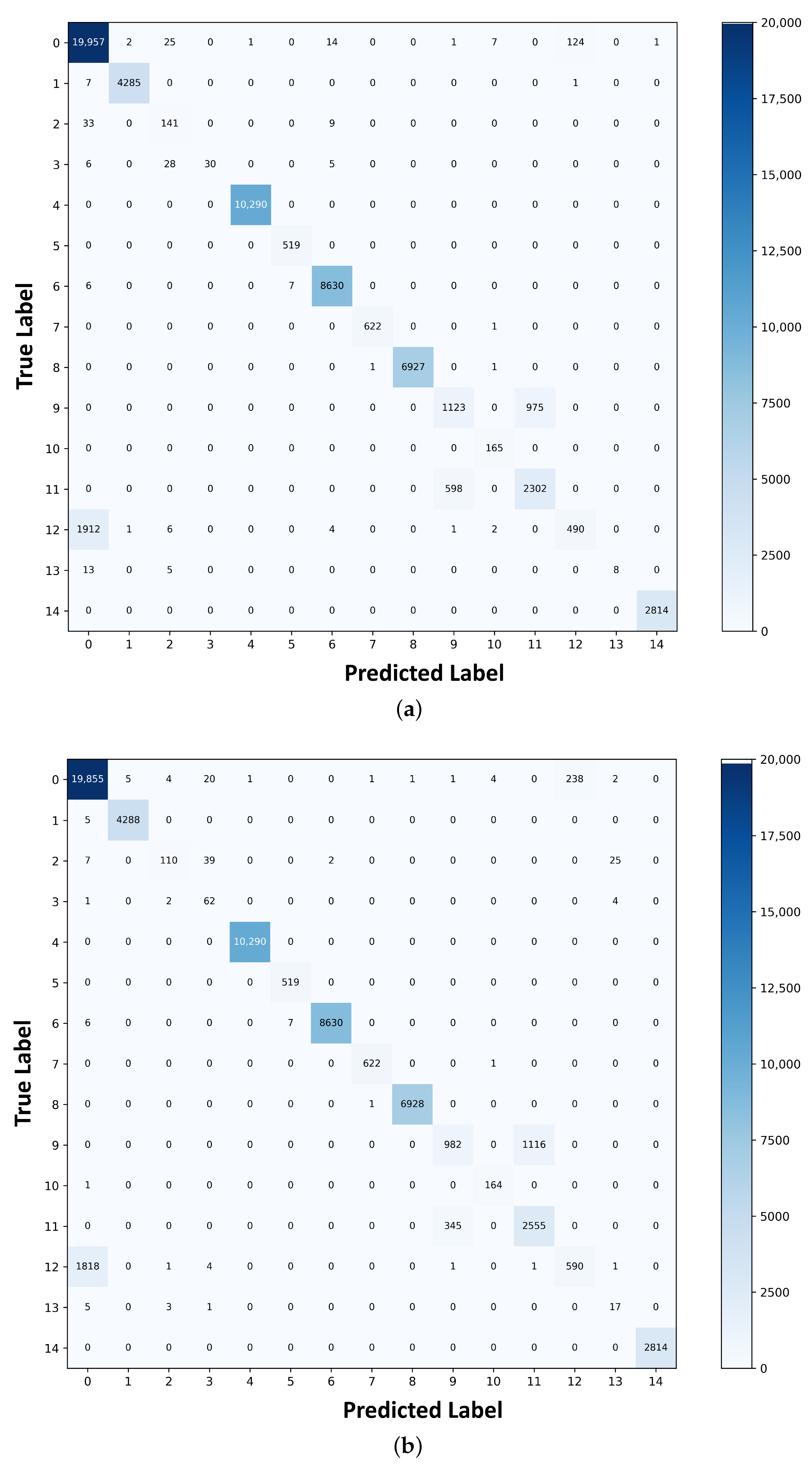- Experimental software environment: The proposed sparse-expert-based intrusion detection method for IoT networks was implemented using the PyTorch (version 2.5.1) framework. Data processing, numerical computation, and visualization were mainly carried out with libraries such as Pandas (version 2.2.3), NumPy (version 1.26.4), and Matplotlib (version 3.10.0).