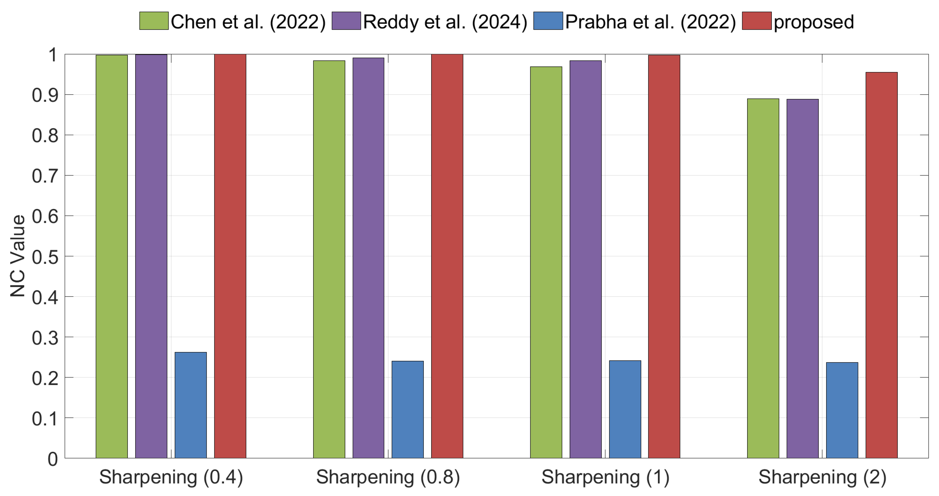, the proposed method achieves higher NC values than Algorithm [