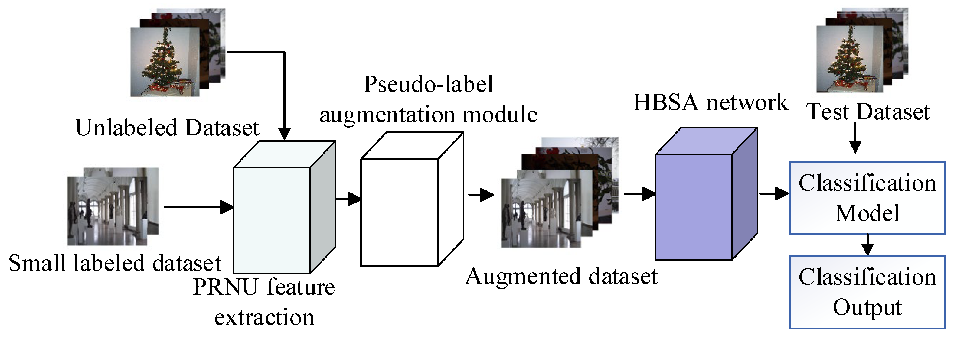 - MDM-CPS [10]: A method combining multiple distance metrics with coordinate-based pseudo-label selection. By incorporating collaborative attention Blocks, this method filters pseudo-labeled samples to expand few-shot datasets, which are then used to train classification models for source camera recognition.