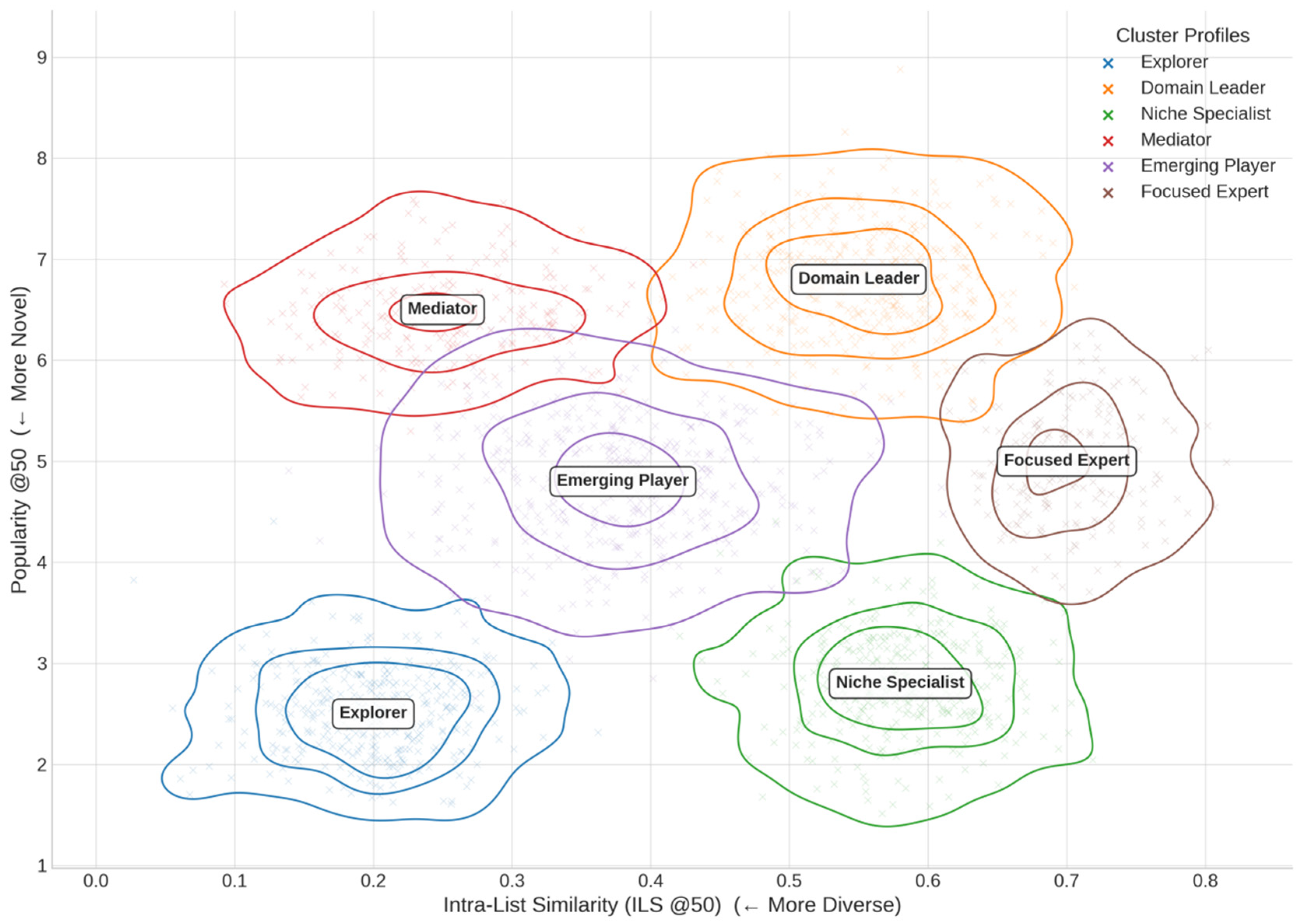 - Explorers: High diversity, low popularity. These are often research-oriented entities, constantly scouting for a wide range of novel, cutting-edge technologies that may not be popular yet.