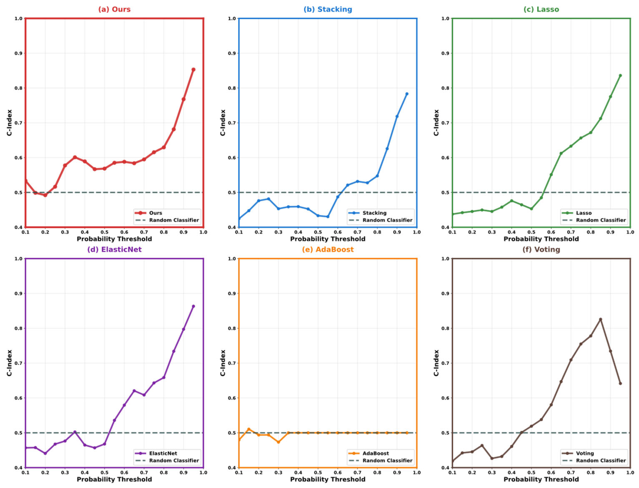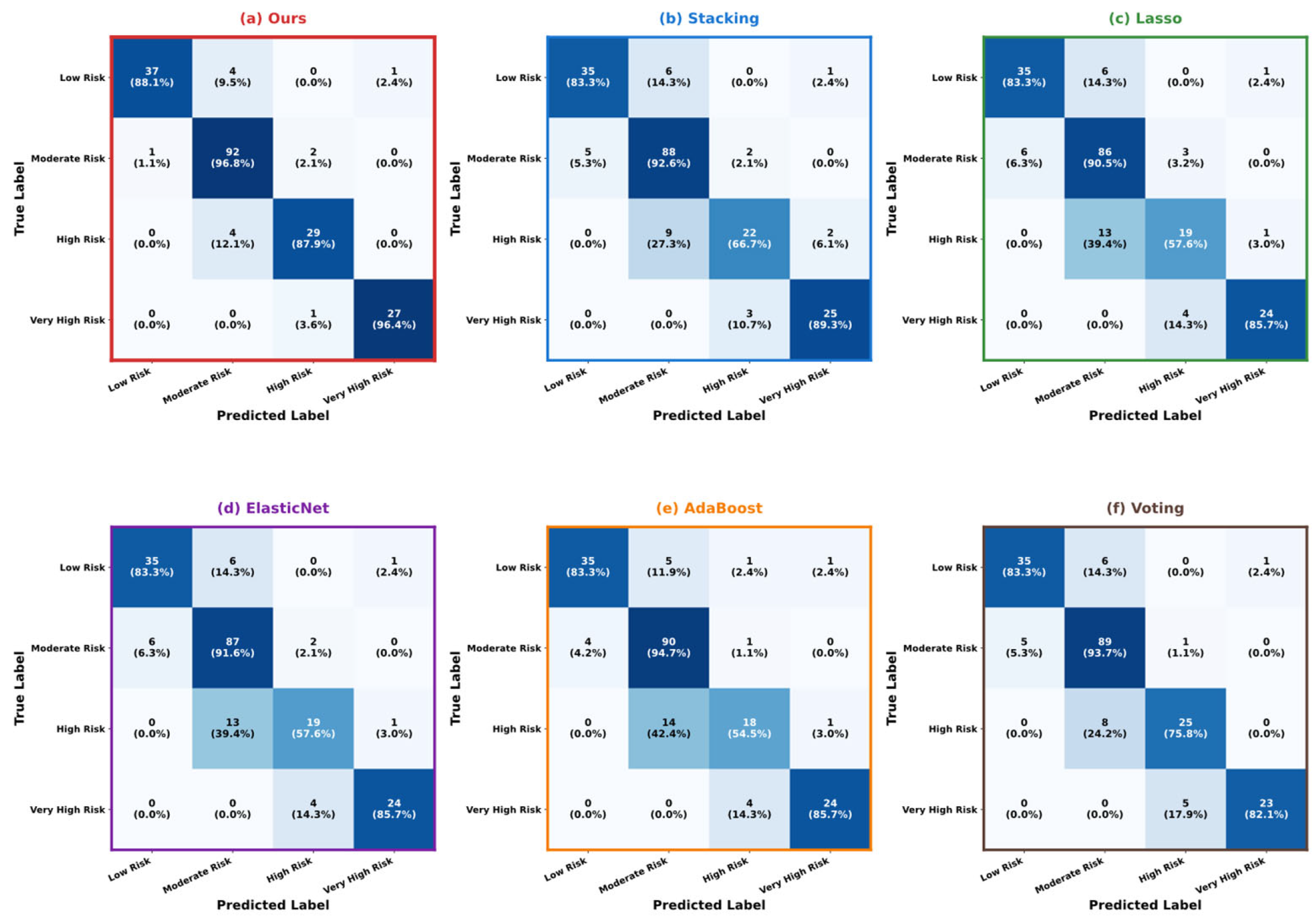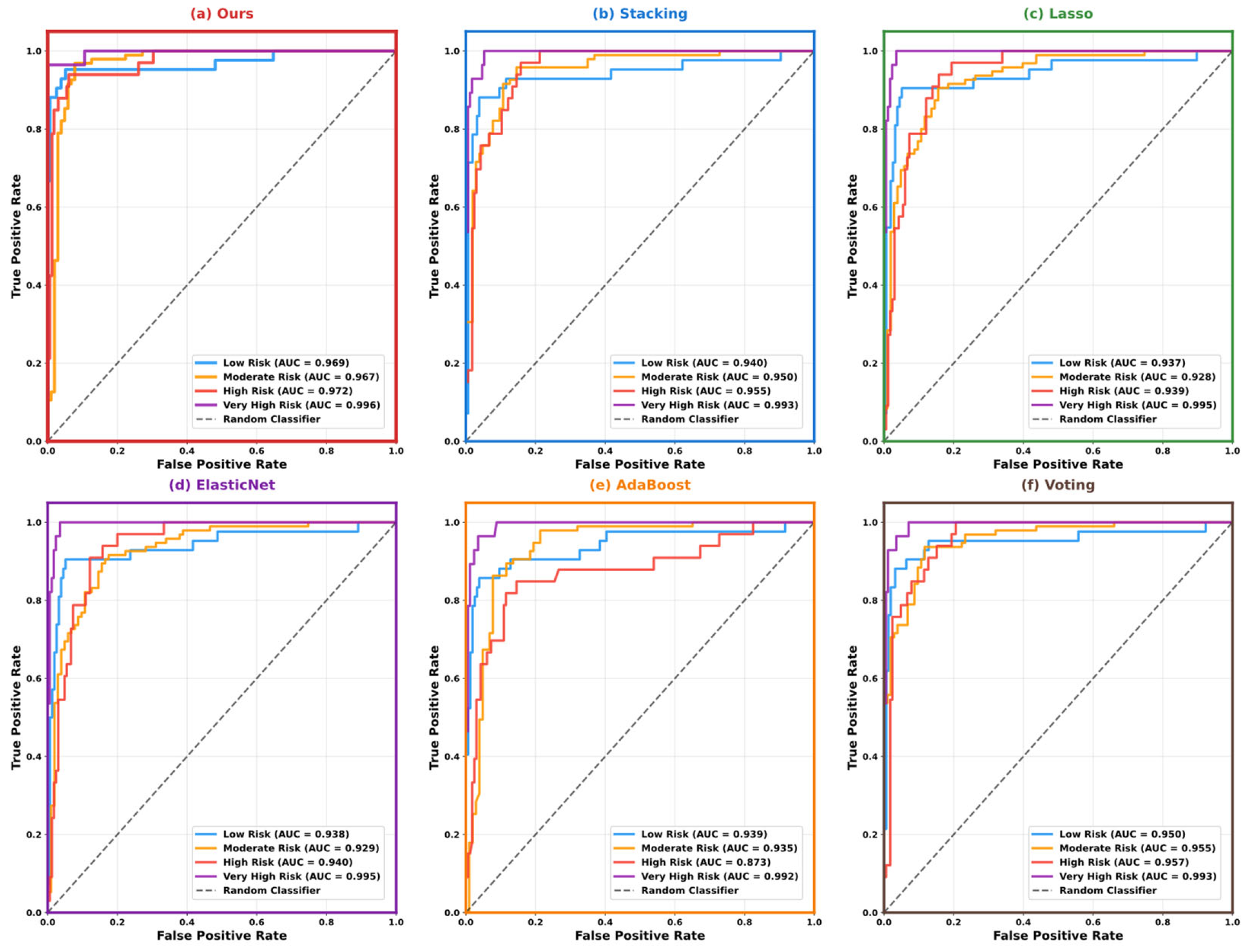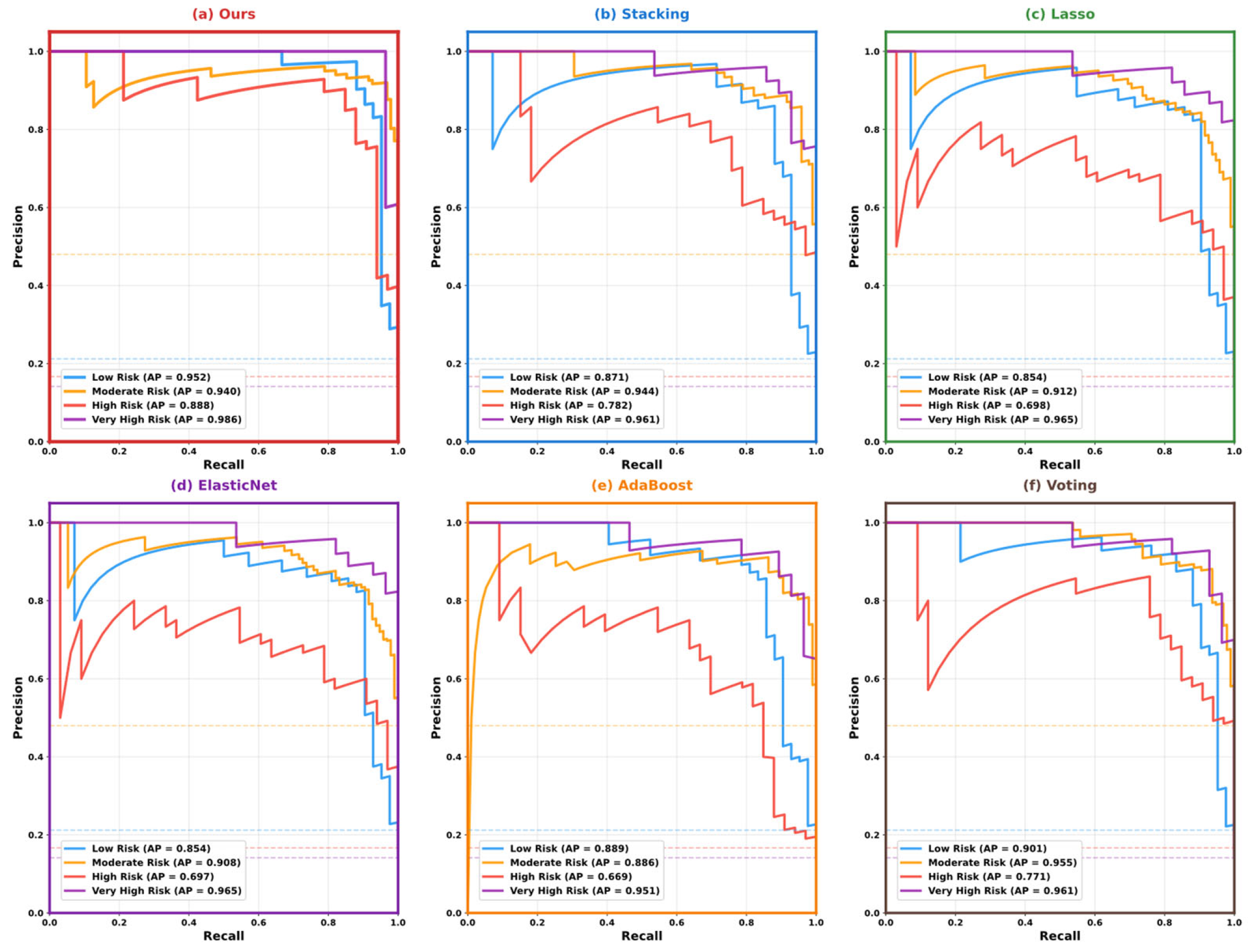 | Stacking | 0.850 ± 0.027 | 0.846 ± 0.029 | 0.821 ± 0.032 | 0.831 ± 0.030 | 0.776 ± 0.041 | 0.775 ± 0.041 | 0.948 ± 0.014 |