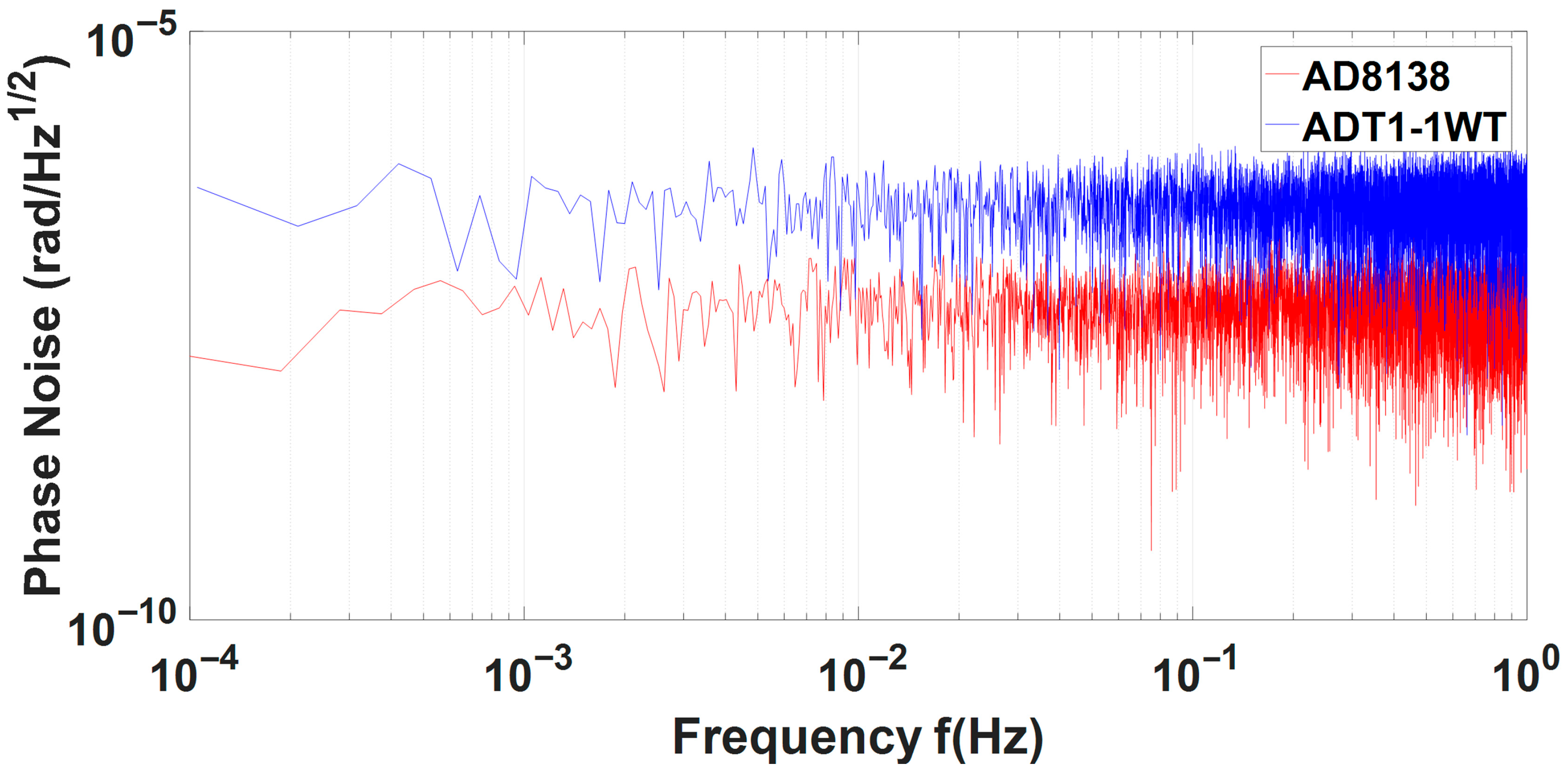 - Liu, H.; Yu, T.; Luo, Z. A low-noise analog frontend design for the taiji phasemeter prototype. Rev. Sci. Instrum. 2021, 92, 054501. [Google Scholar] [CrossRef] [PubMed]