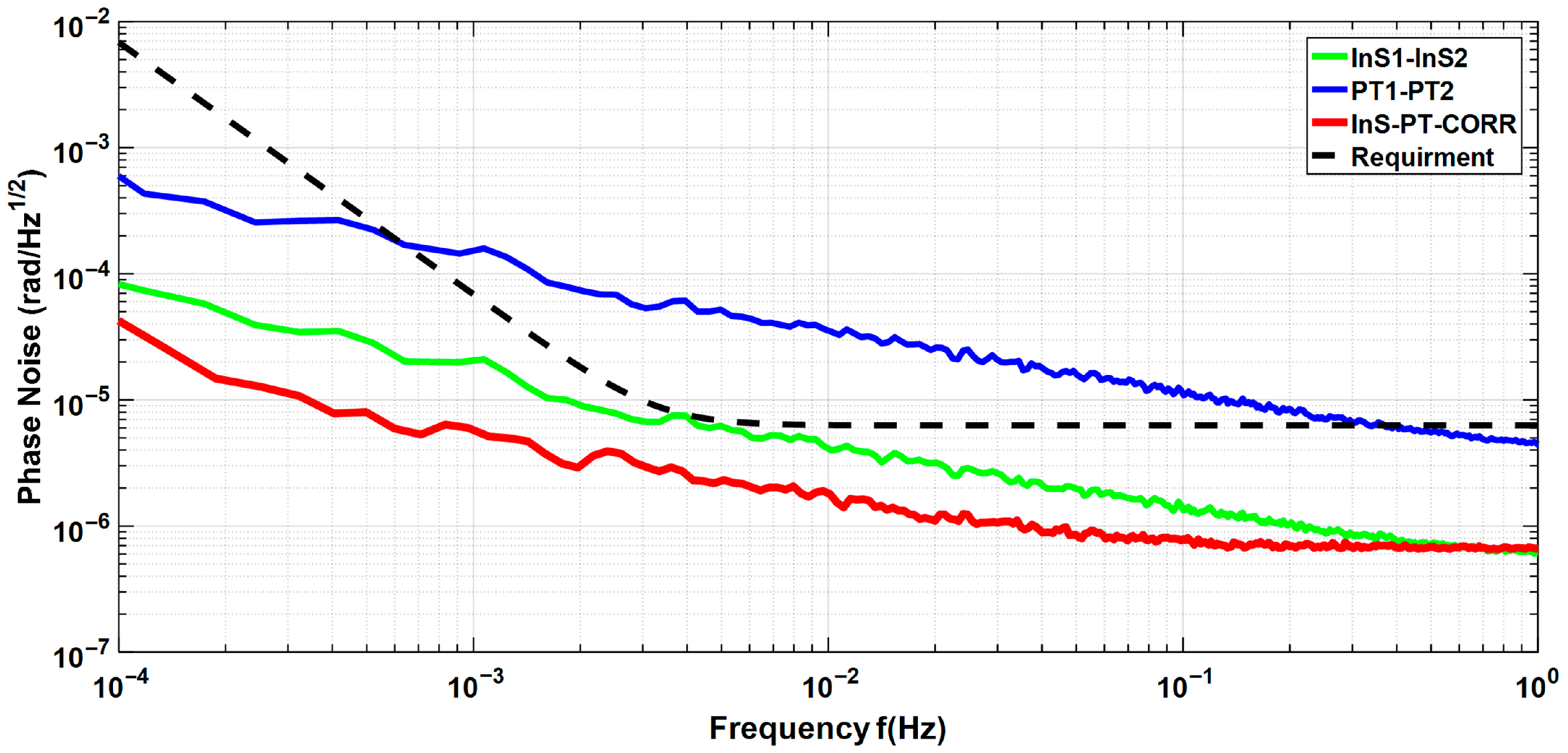 - Yu, T.; Xue, K.; Long, H.; Pan, M.; Wang, Z.; Liu, Y. Development and verification of sampling timing jitter noise suppression system for phasemeter. Photonics 2025, 12, 623. [Google Scholar] [CrossRef]