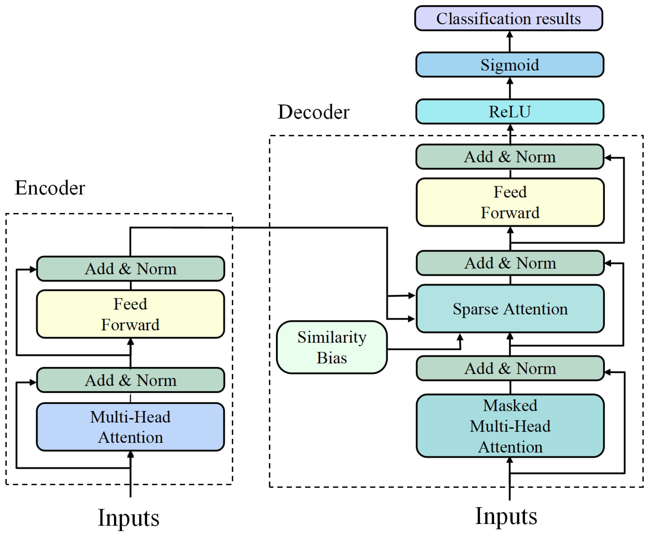 - We introduce a Sparse Bias-Aware Attention mechanism in the Transformer decoder for matching. A relevance-driven bias term is injected into attention logits, and sparse selection is performed on the biased logits so that normalization and value aggregation are computed only over the most task-relevant subset, reducing the time complexity of attention computation while improving semantic focus.