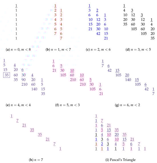 - Knuth, D.E. The Art of Computer Programming, Volume 1: Fundamental Algorithms. In Section on Pascal’s Triangle Algorithms, 3rd ed.; Addison-Wesley: Boston, MA, USA, 1997. [Google Scholar]
