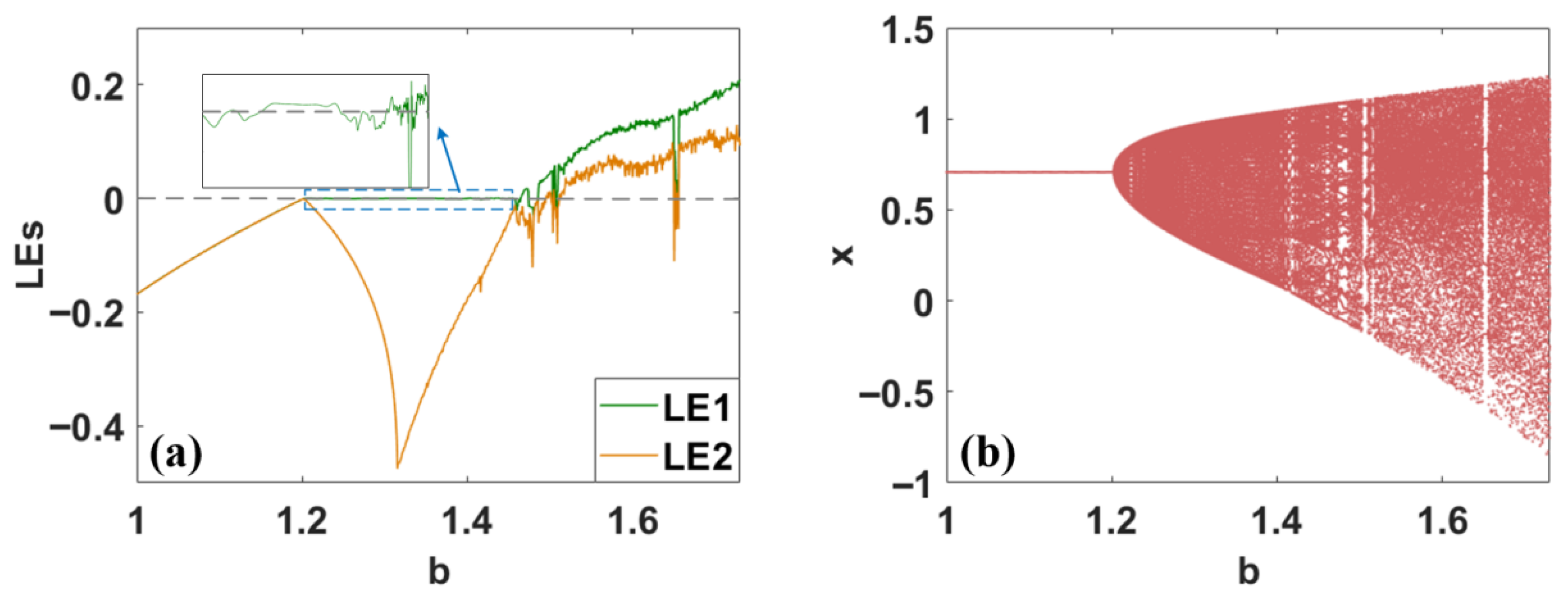 2.3.2. Bifurcation Analysis Under the Parameter of b