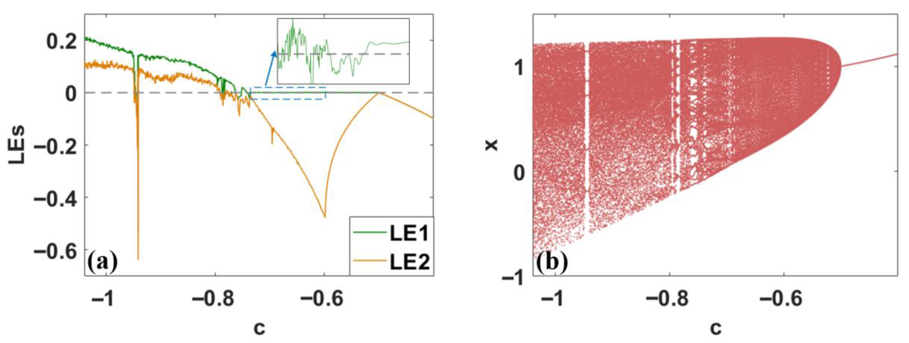 - Li, C.; Gao, Y.; Lei, T.; Li, R.Y.M.; Xu, Y. Two independent offset controllers in a three-dimensional chaotic system. Int. J. Bifurc. Chaos 2024, 34, 2450008. [Google Scholar] [CrossRef]