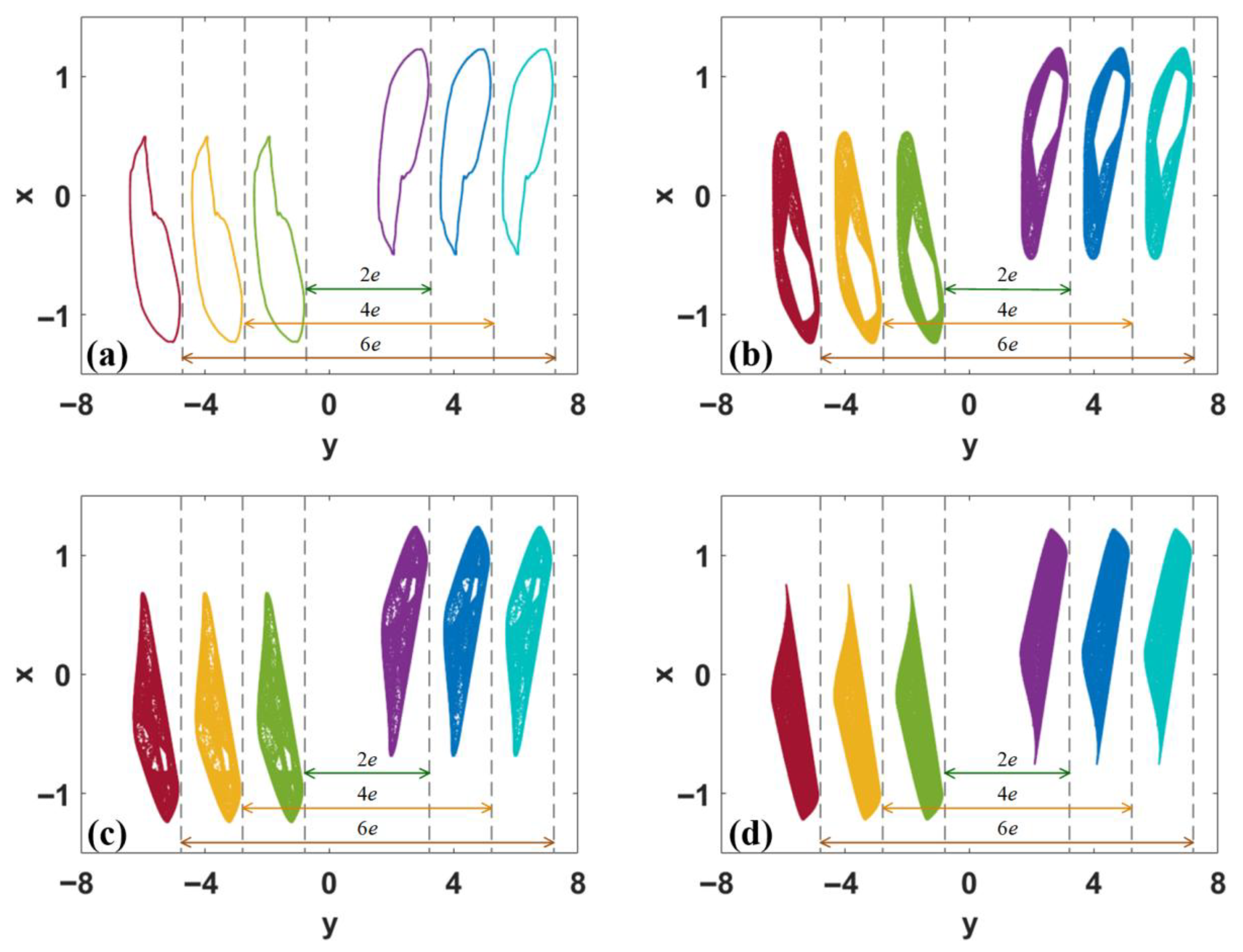 - Zhang, X.; Li, C.; Dong, E.; Zhao, Y.; Liu, Z. A conservative memristive system with amplitude control and offset boosting. Int. J. Bifurc. Chaos 2022, 32, 2250057. [Google Scholar] [CrossRef]