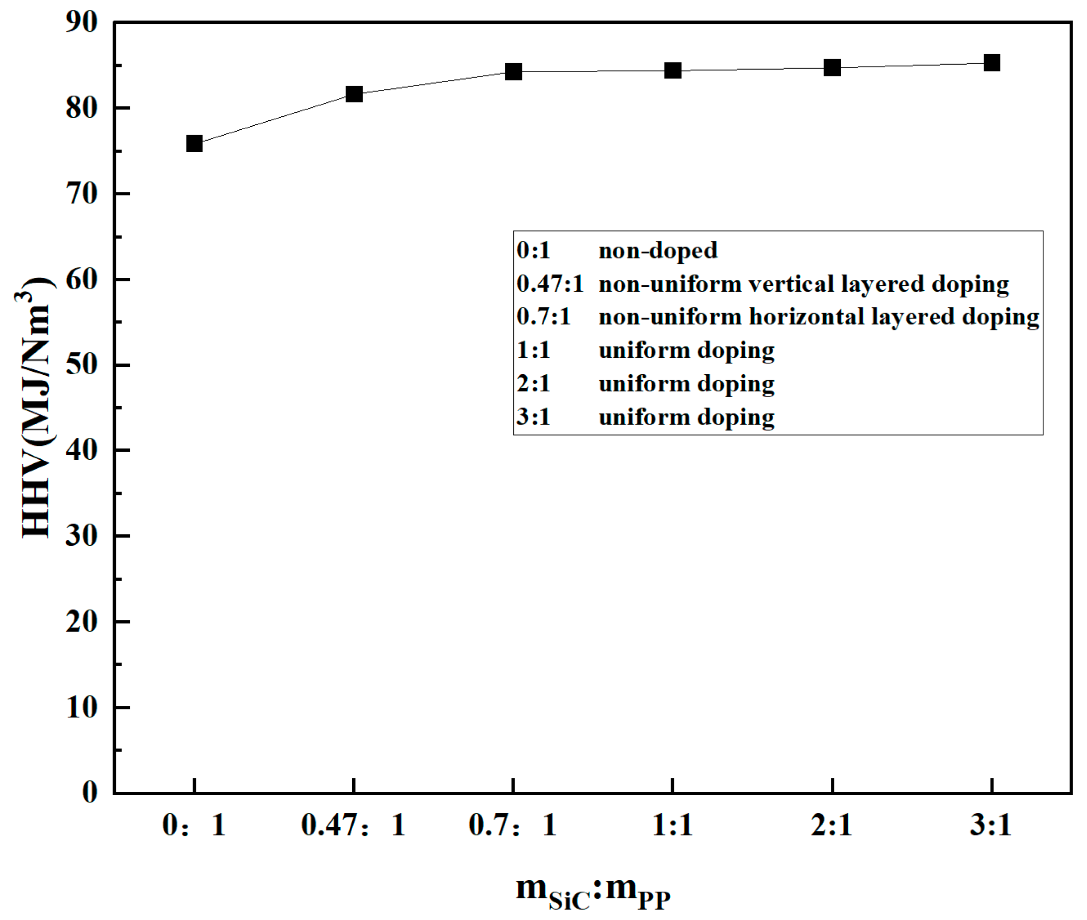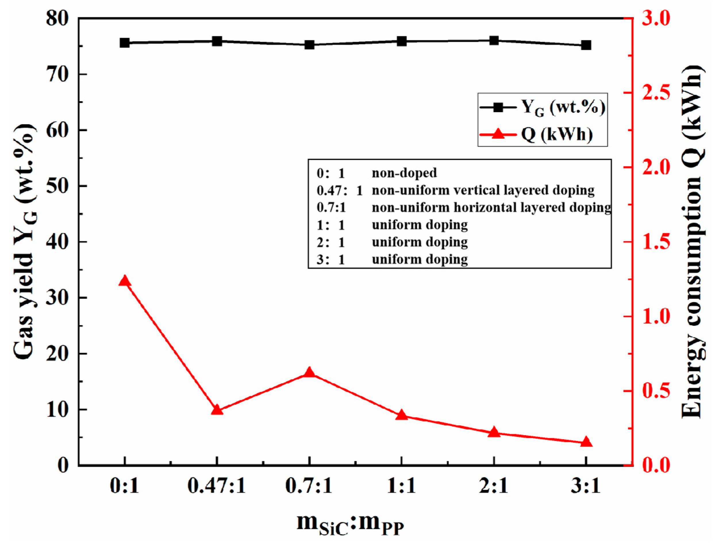 3.4. The Effect of SiC Doping Methods on Polypropylene Plastic Pyrolysis Gas Composition and HHV