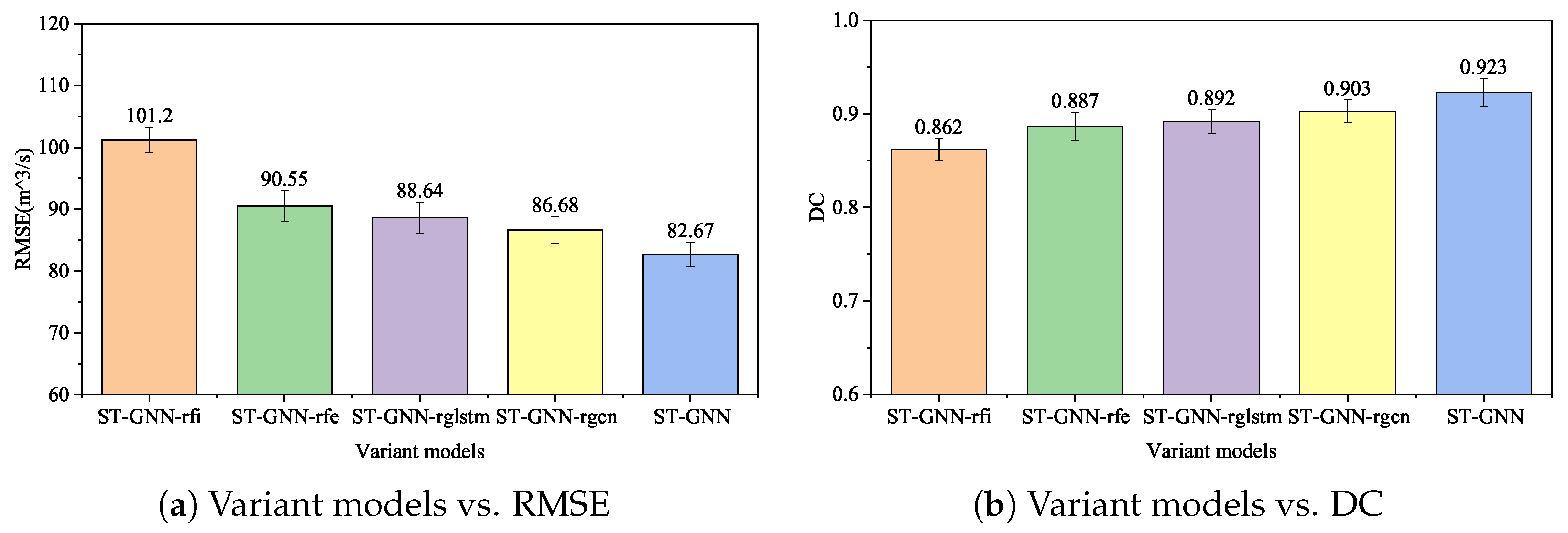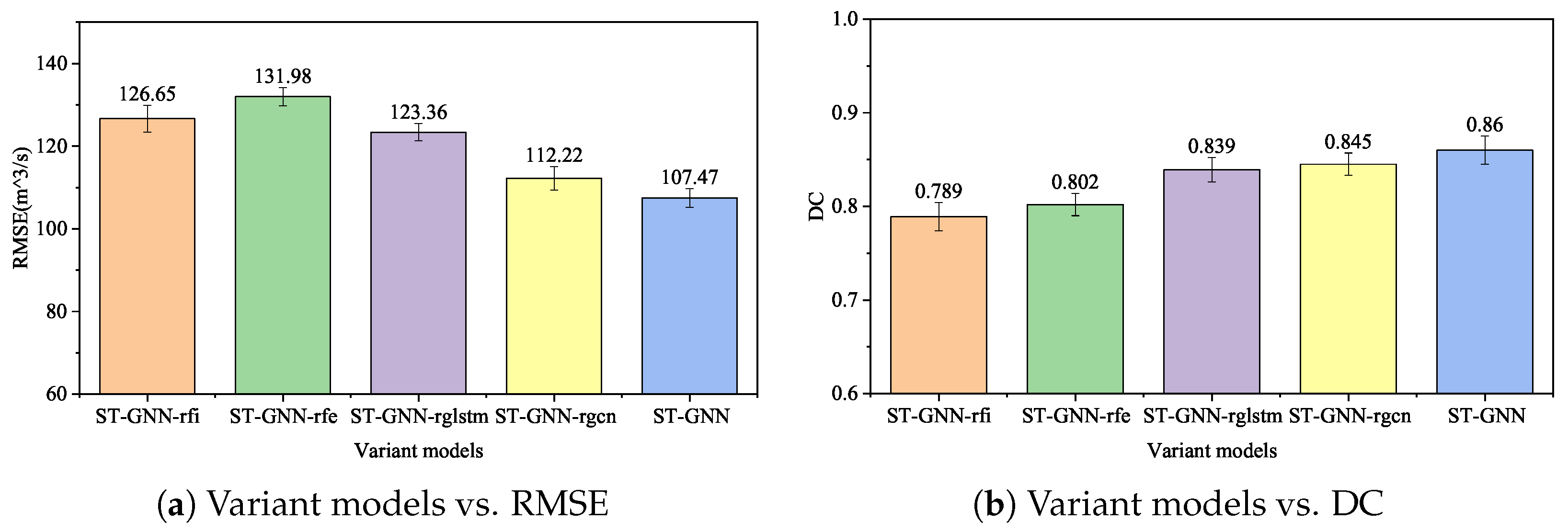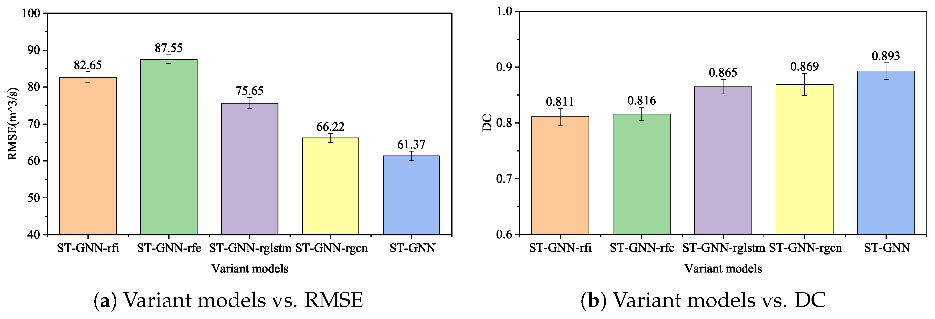 - ST-GNN-rfi: The variant model of ST-GNN that removes future rainfall input module.
