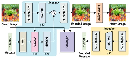 - Zhu, J.; Kaplan, R.; Johnson, J.; Fei-Fei, L. HiDDeN: Hiding Data with Deep Networks. In Proceedings of the Computer Vision—ECCV 2018: 15th European Conference, Munich, Germany, 8–14 September 2018; Springer: Berlin/Heidelberg, Germany, 2018; pp. 682–697. [Google Scholar] [CrossRef]