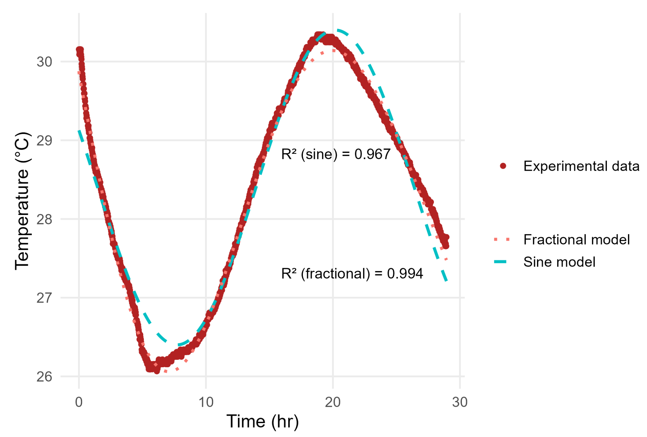 Figure 6, both the fractional and sine models yield higher coefficients of determination (