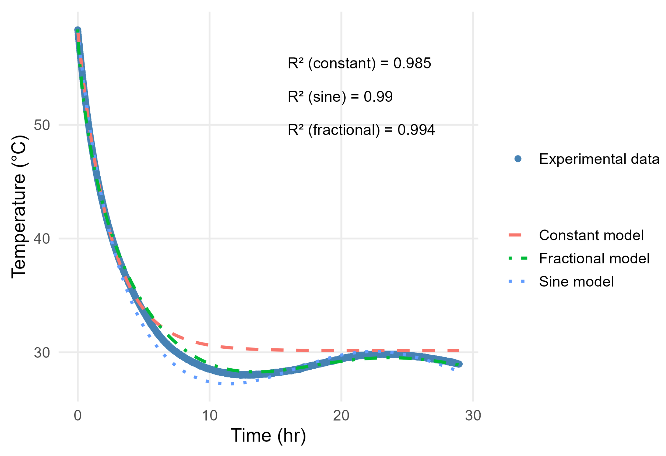 2], in which the conformable derivative was applied to short-term cooling, the present work extends the analysis to long-term behavior and incorporates the effect of variable ambient temperature, resulting in a more comprehensive and general model. To validate the results, temperature sensors and sinusoidal models expressed in terms of