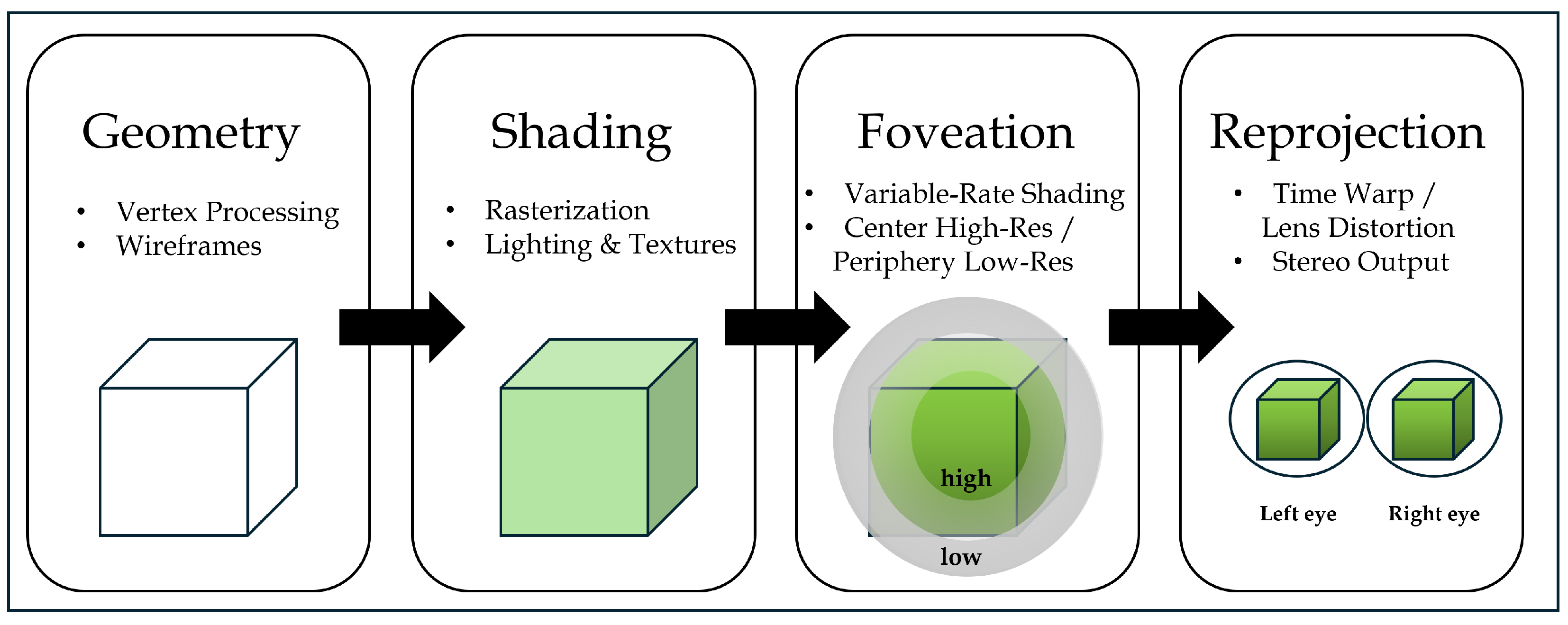We review hybrid and neural rendering for dual-eye 90/120 Hz VR. We distill rules of thumb for the quality–latency–memory trade-off (e.g., radiance caching, network factorization, perceptual scheduling).