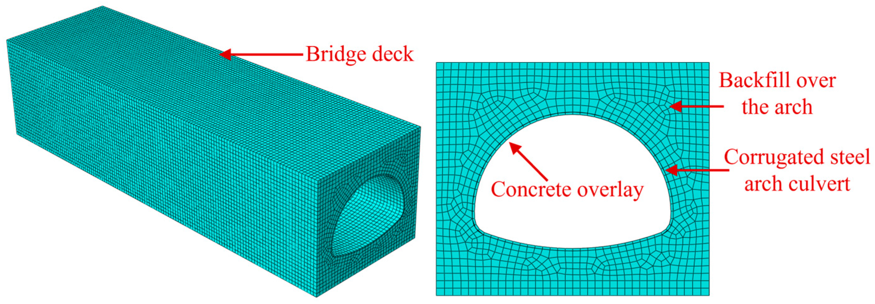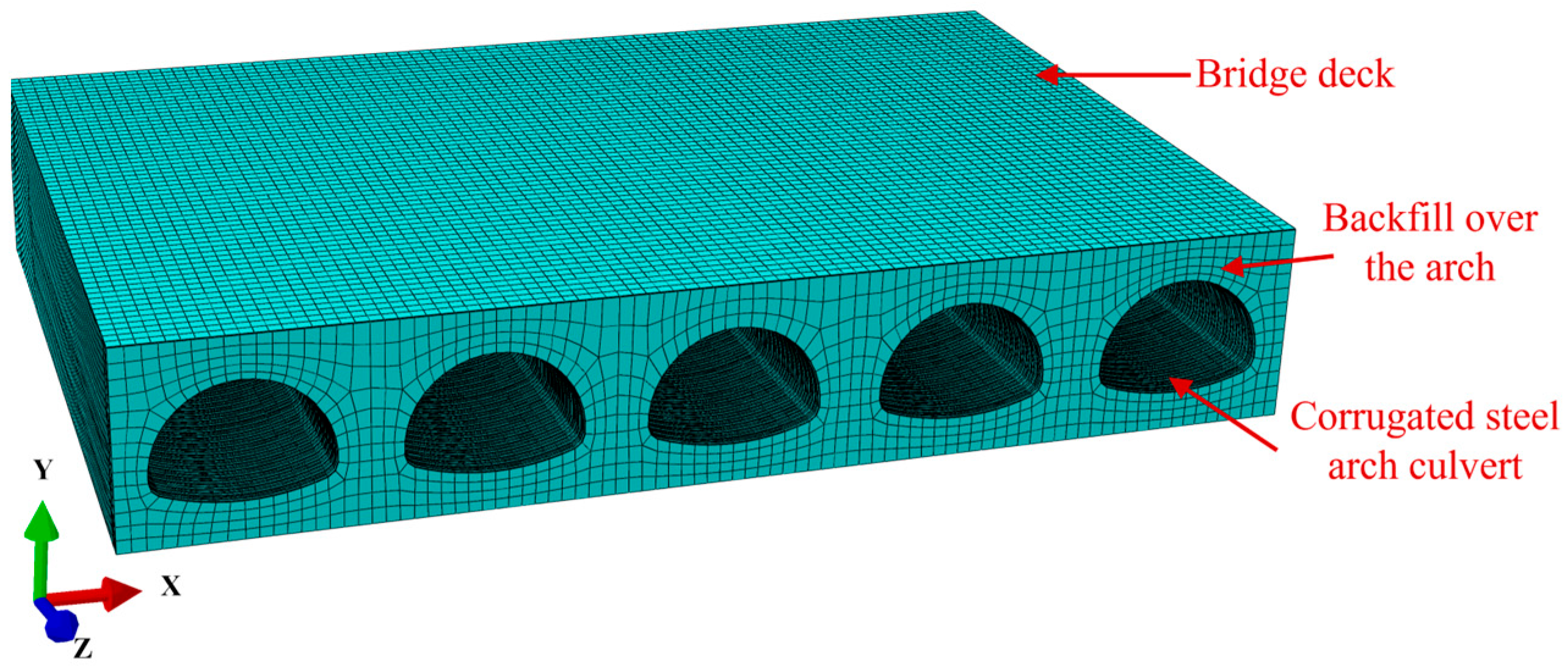 - Bao, X.; Wu, X.; Shen, J.; Wu, S.; Chen, X.; Cui, H. Performance analysis of multiple steel corrugated pipe arch culvert under construction and periodic vehicle load. Appl. Sci. 2023, 13, 9441. [Google Scholar] [CrossRef]