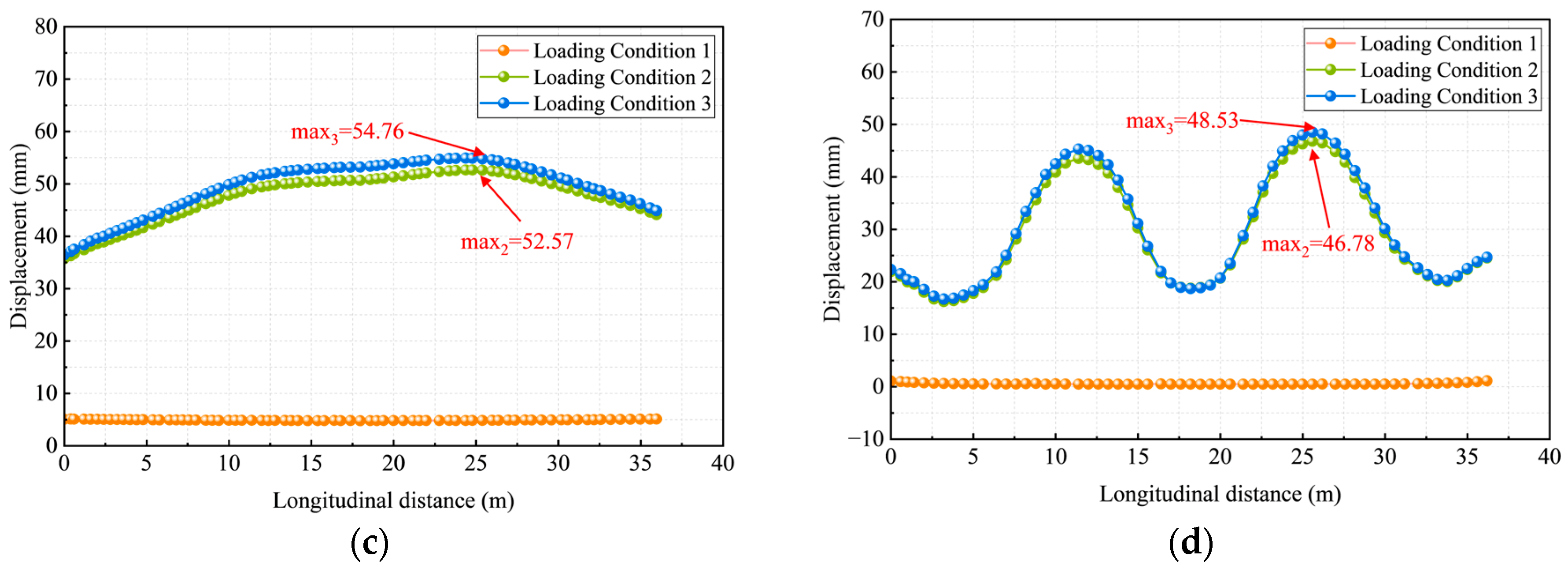 3.5. Comparative Analysis of Structural Response Under Different Loading Conditions
