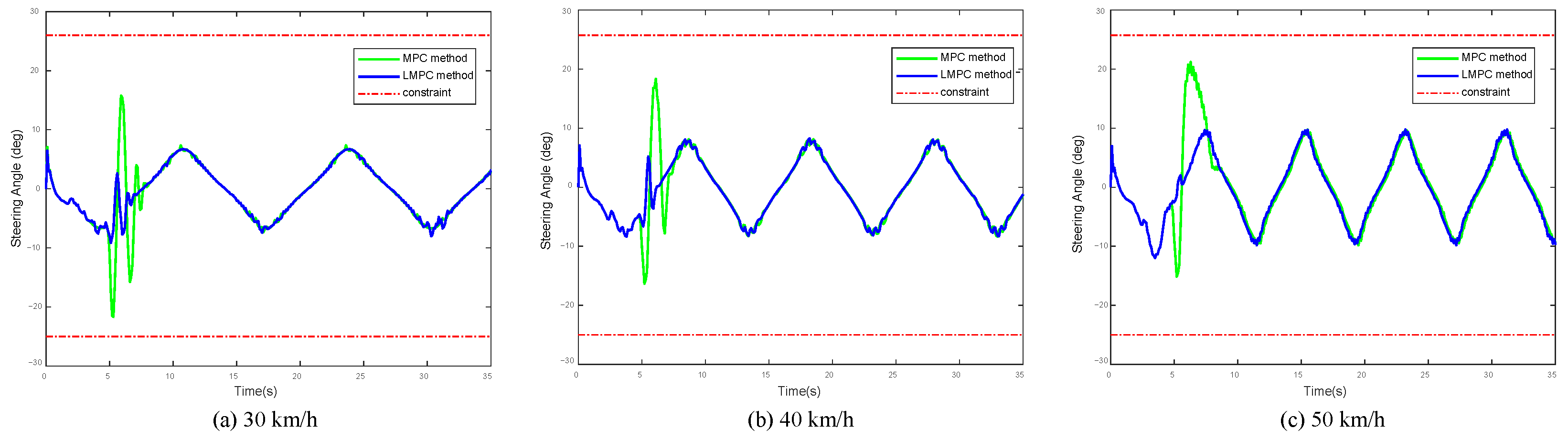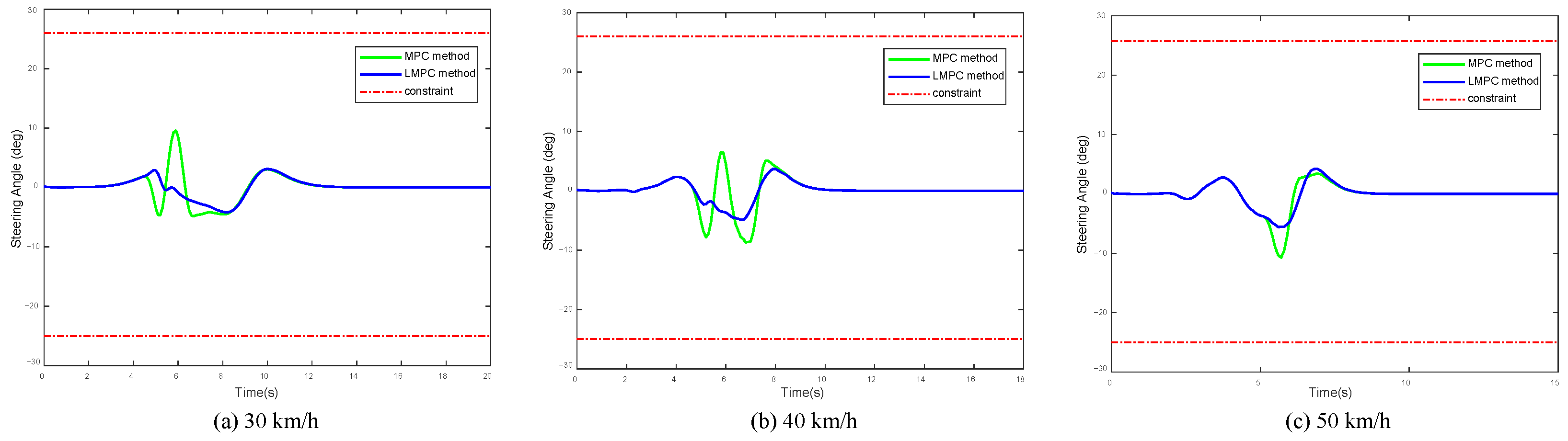 - Choi, M.; Choi, S.B. MPC for vehicle lateral stability via differential braking and active front steering considering practical aspects. Proc. Inst. Mech. Eng. Part D J. Automob. Eng. 2016, 230, 459–469. [Google Scholar] [CrossRef]
