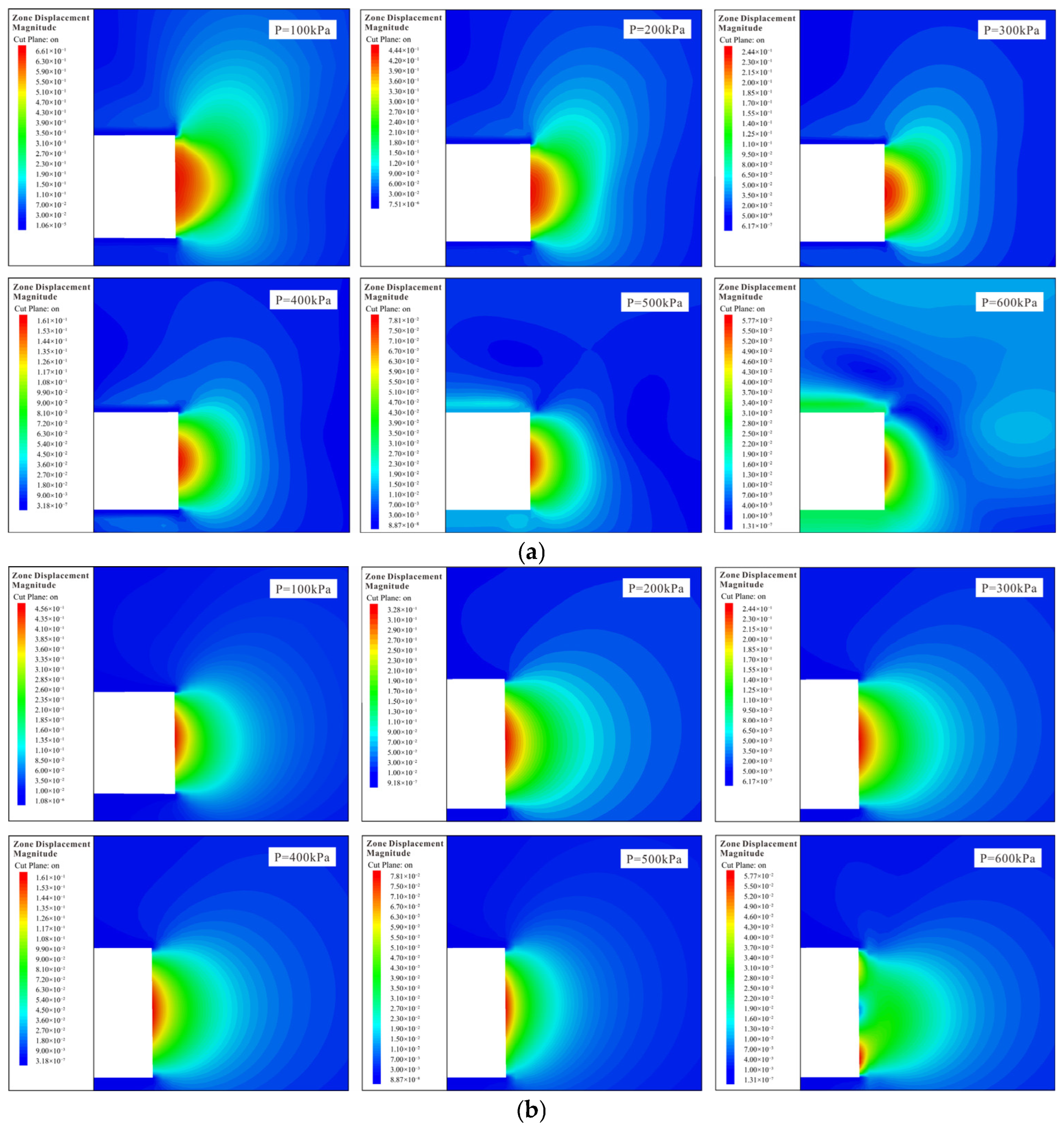 4.1. Comparison of Fluid–Solid Coupling Effects