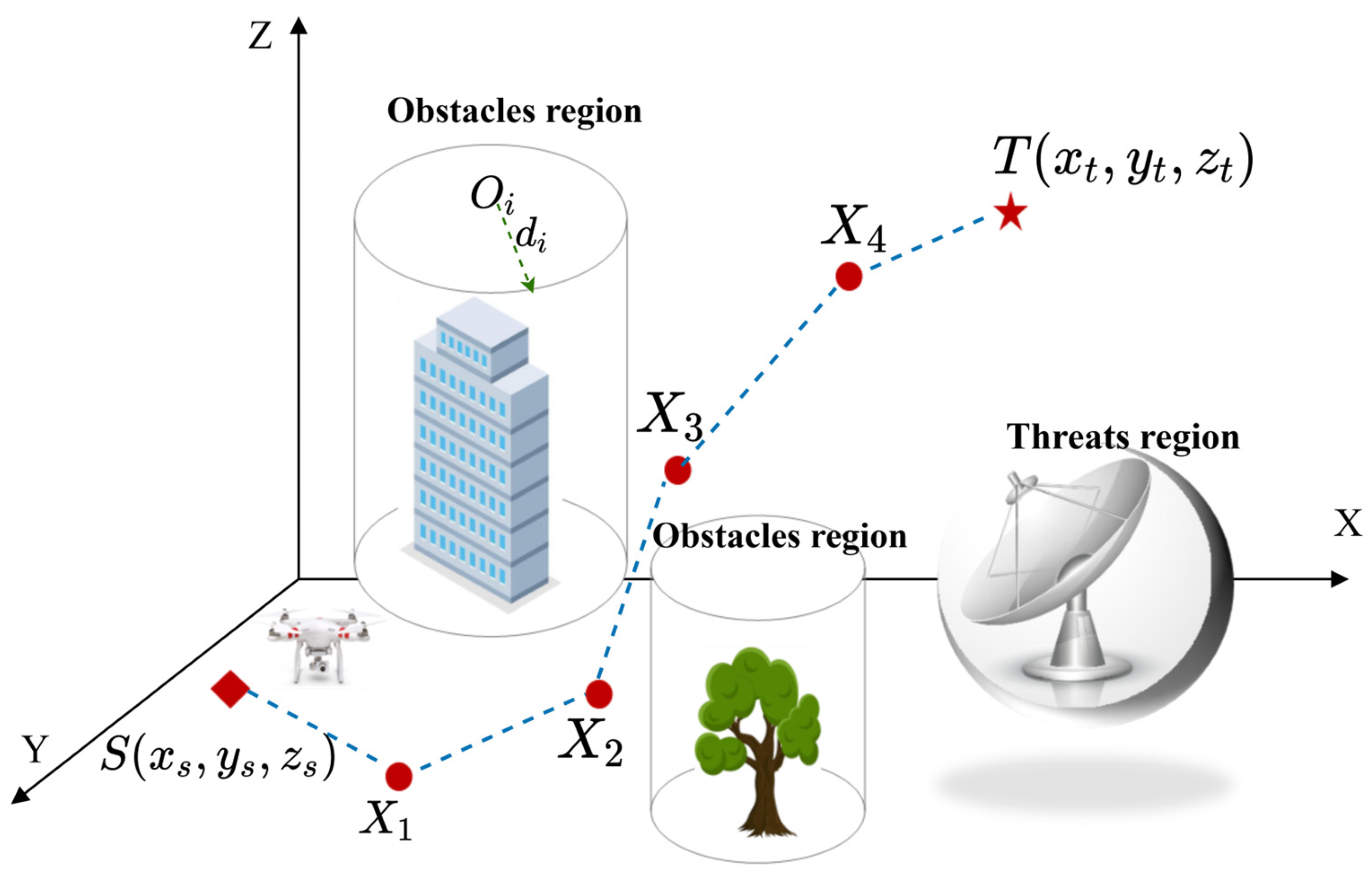 - Yang, Y.; Sun, L.; Fu, Y.; Feng, W.; Xu, K. Three-dimensional UAV trajectory planning based on improved sparrow search algorithm. Symmetry 2025, 17, 2071. [Google Scholar] [CrossRef]