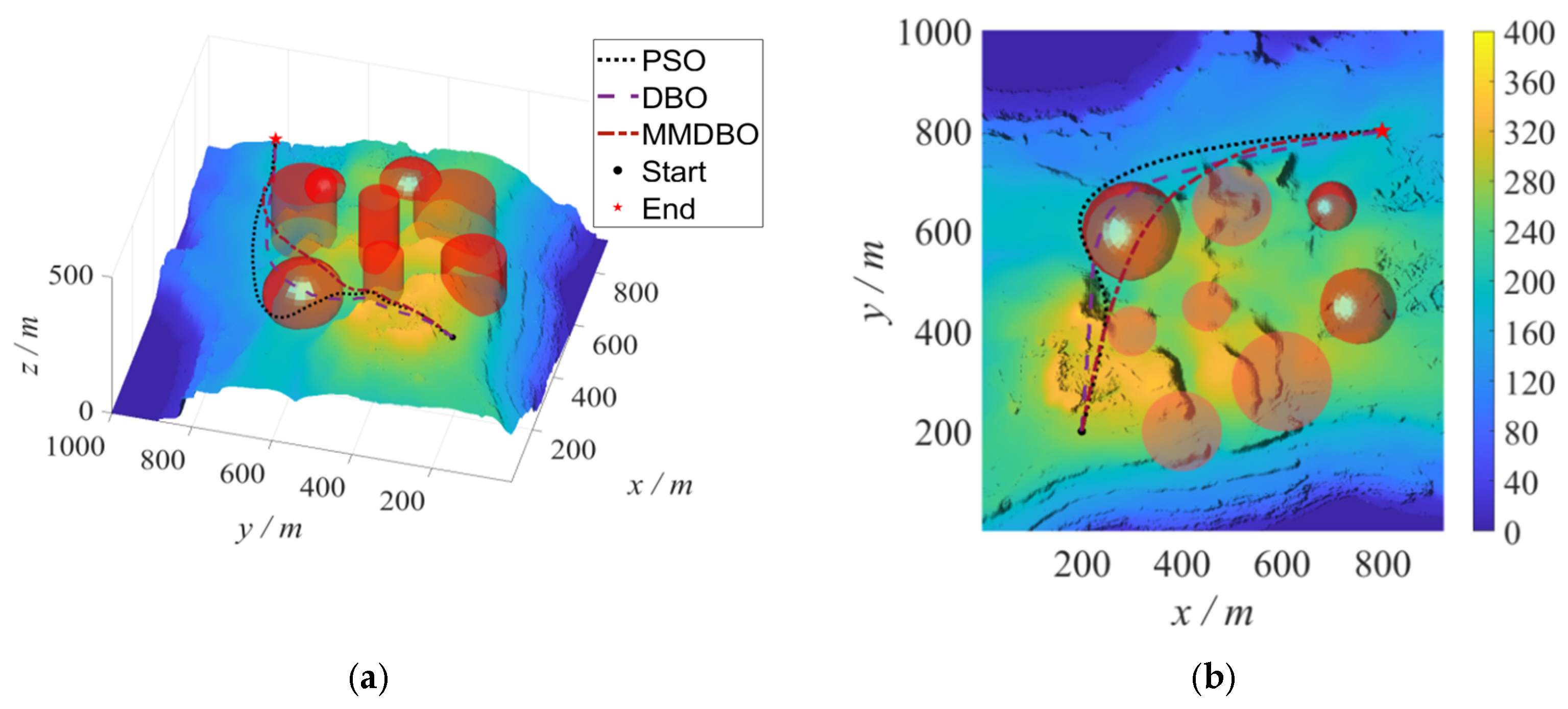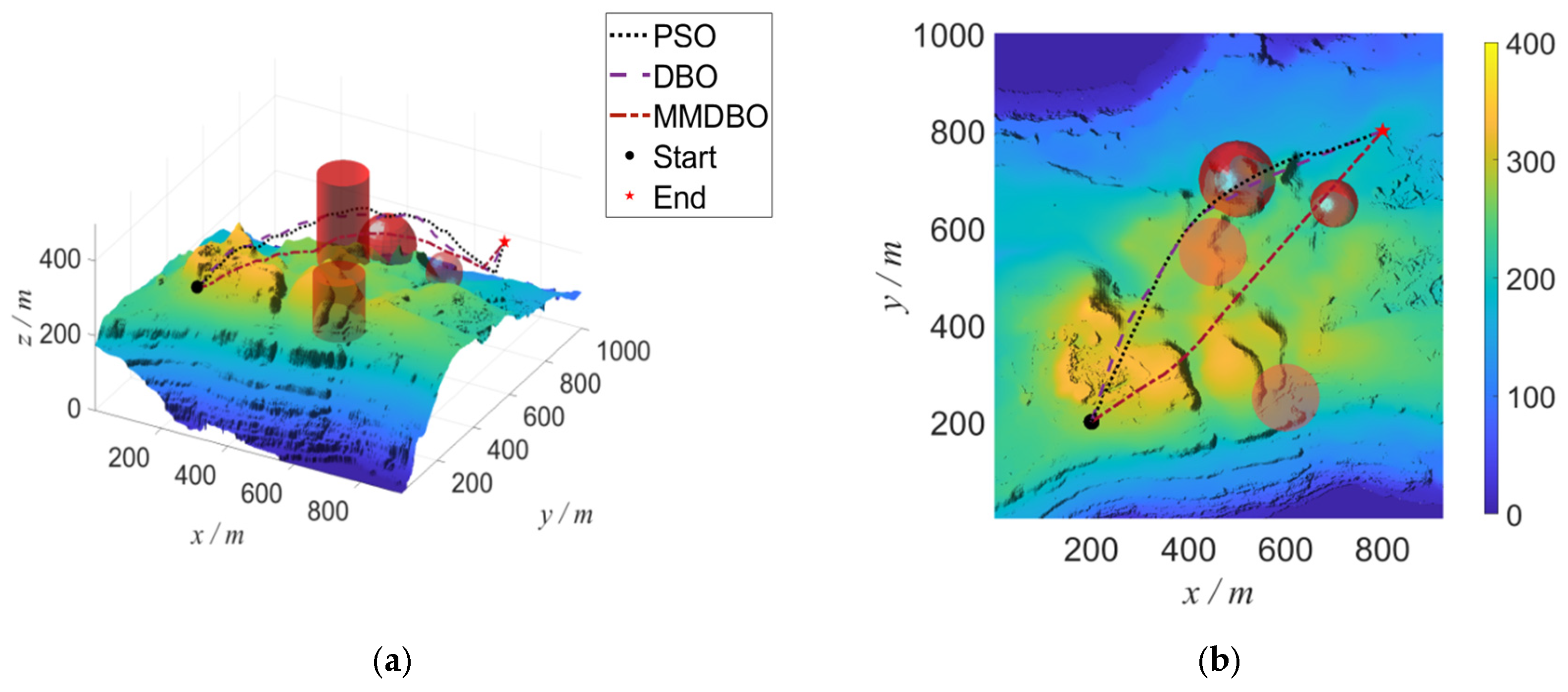 3.5. Implementation of the MMDBO in UAV Path Planning