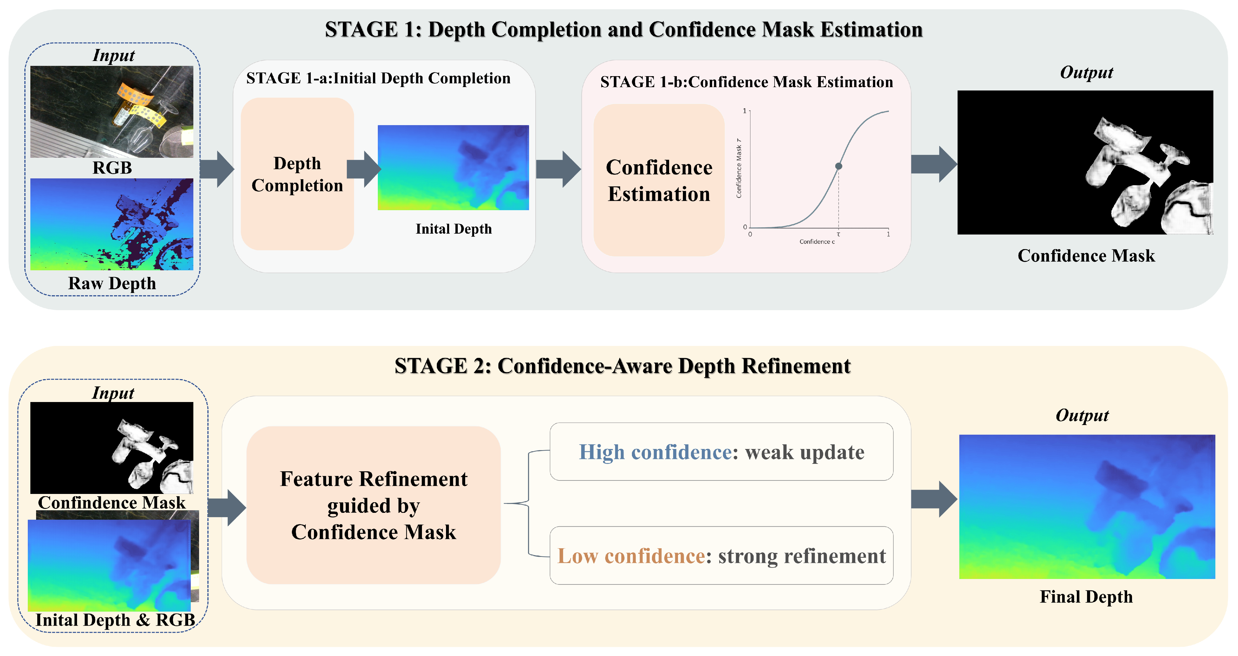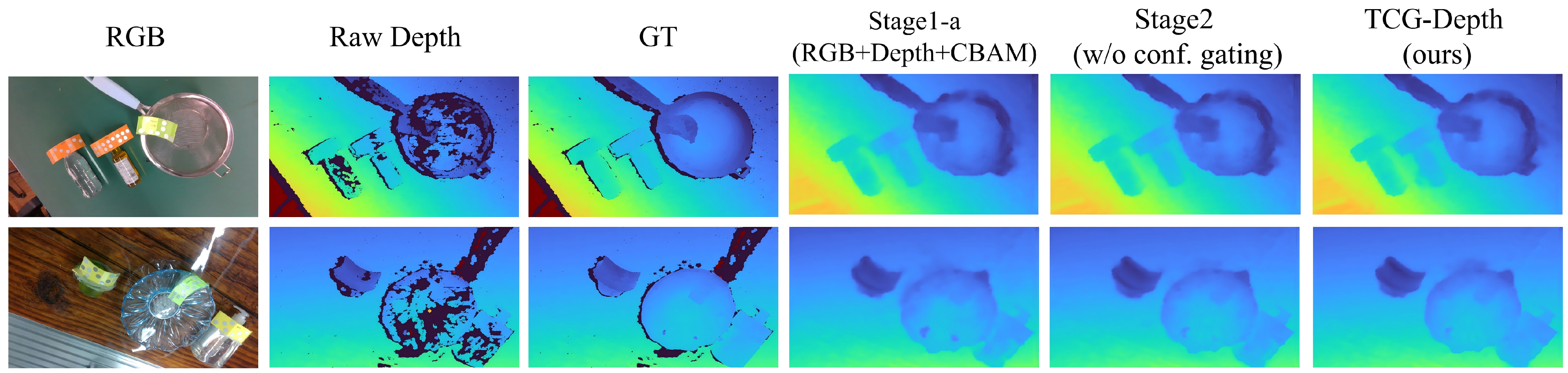 | TCG-Depth | Confidence-Aware Two-Stage Depth Completion for Transparent Objects |