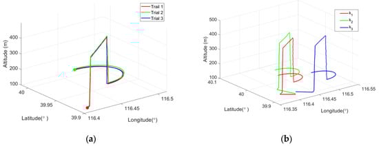 The flight trajectories of the UAV Formation. (a) Master UAV; (b) Slave UAVs.