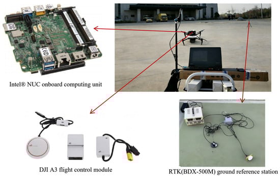 As illustrated in Figure 12, the RTK ground reference station (BDX-500) continuously broadcasts real-time differential corrections to the mobile station (Ublox NEO-M9N), enabling sustained centimeter-level positioning accuracy; this trajectory serves as the ground-truth reference for all subsequent quantitative verification. In this experiment, the DJI Datalink 3 was employed as the manual backup controller for the A3 flight control system. It provides bidirectional telemetry and command transmission up to 3 km under line-of-sight conditions, enabling real-time pilot intervention. In the event of autonomous system anomalies—such as sensor failure, navigation drift, or unexpected environmental interference—the controller supports immediate transition to direct manual mode, allowing precise, low-latency attitude and heading adjustments to ensure flight safety and mission continuity.