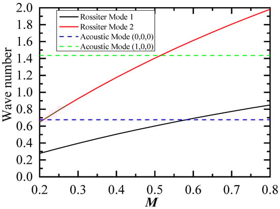 Rossiter modes and acoustic modes versus Mach number.