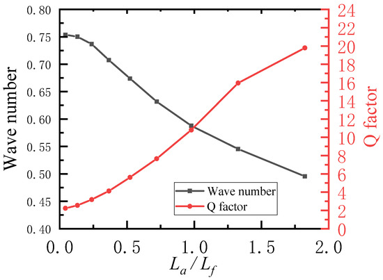 Wave number and Q factor versus La/Lf.