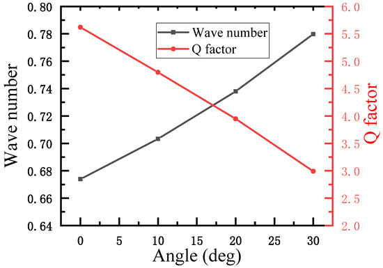 Wave number and Q factor versus volume reduction (angle).