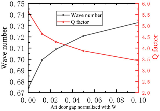 Wave number and Q factor versus aft door gap.