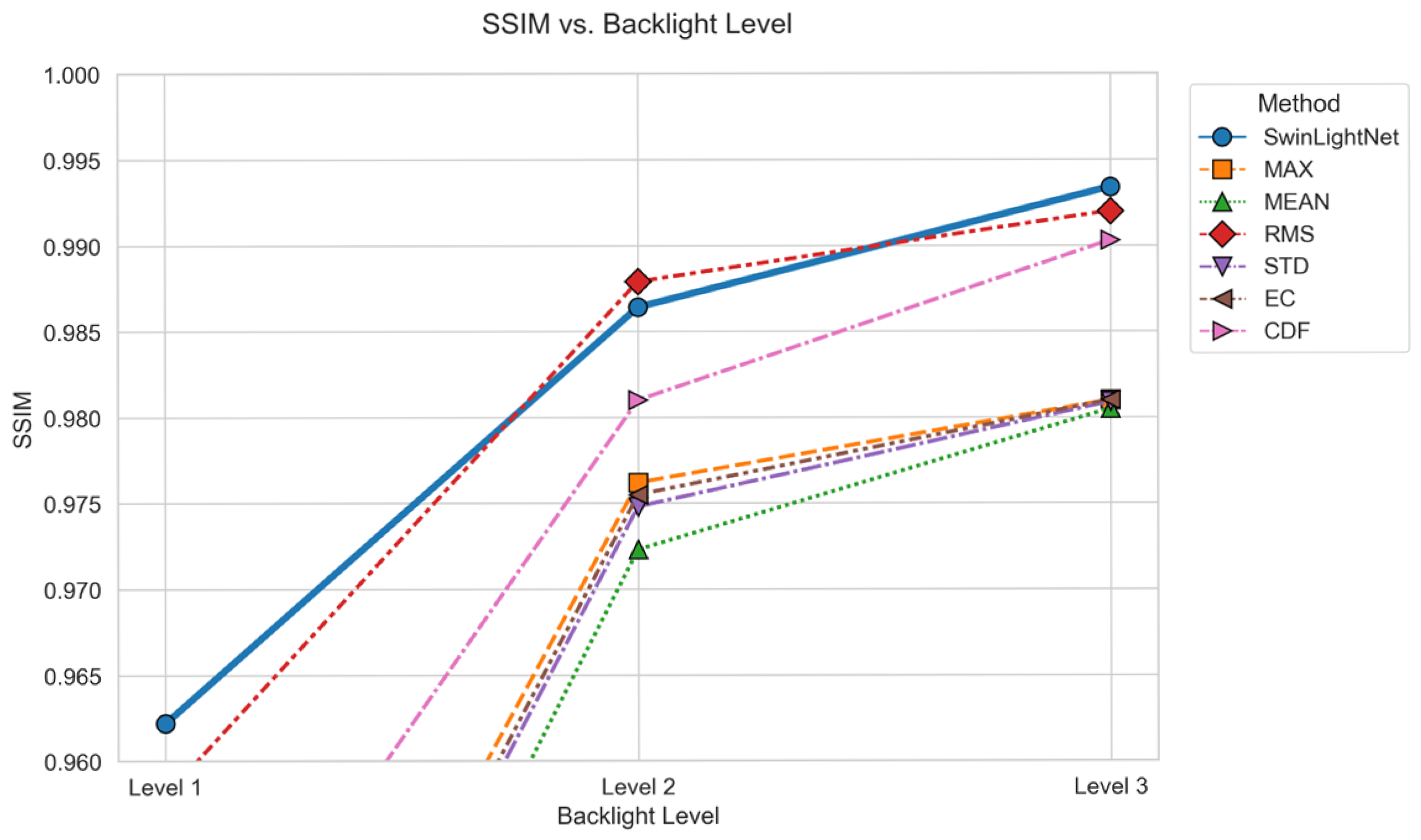 | Backlight Method | SwinLightNet | MAX | MEAN | RMS | STD | EC | CDF |