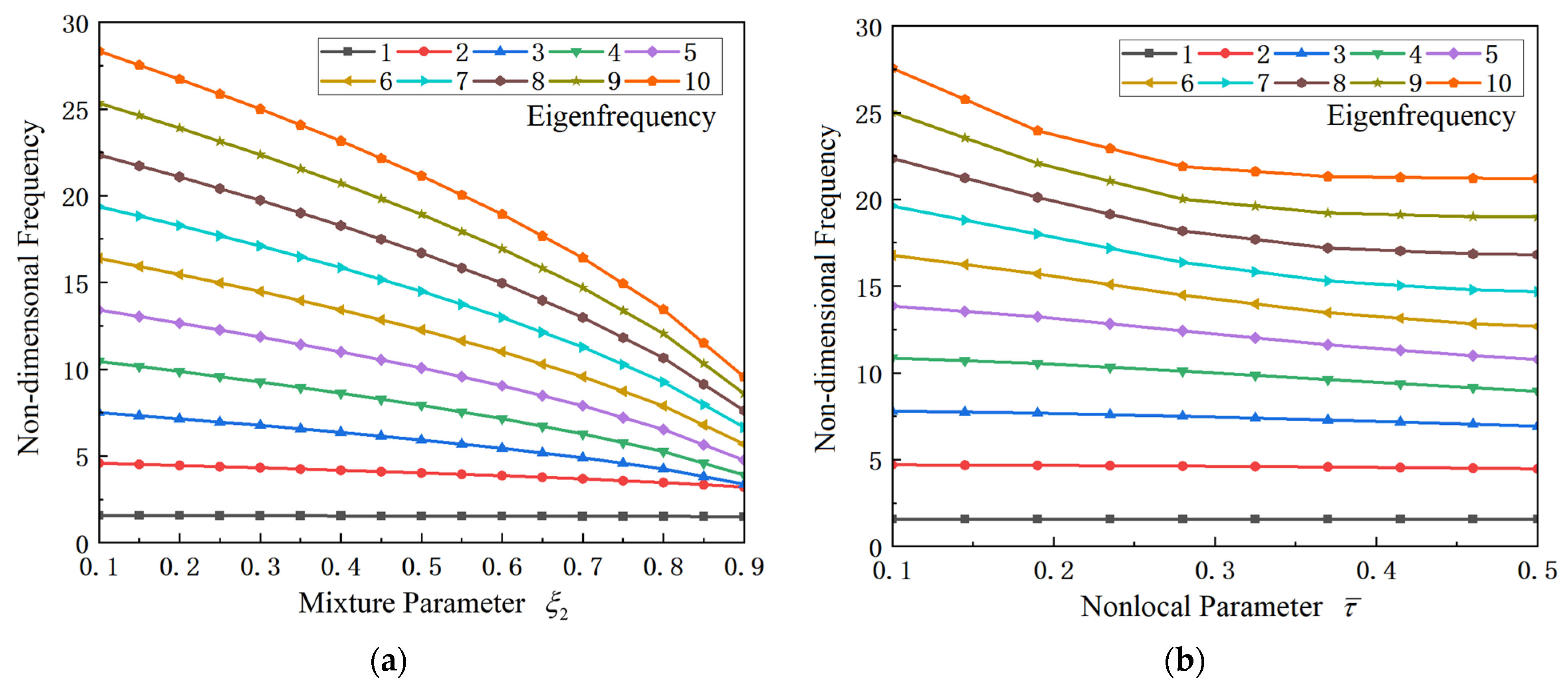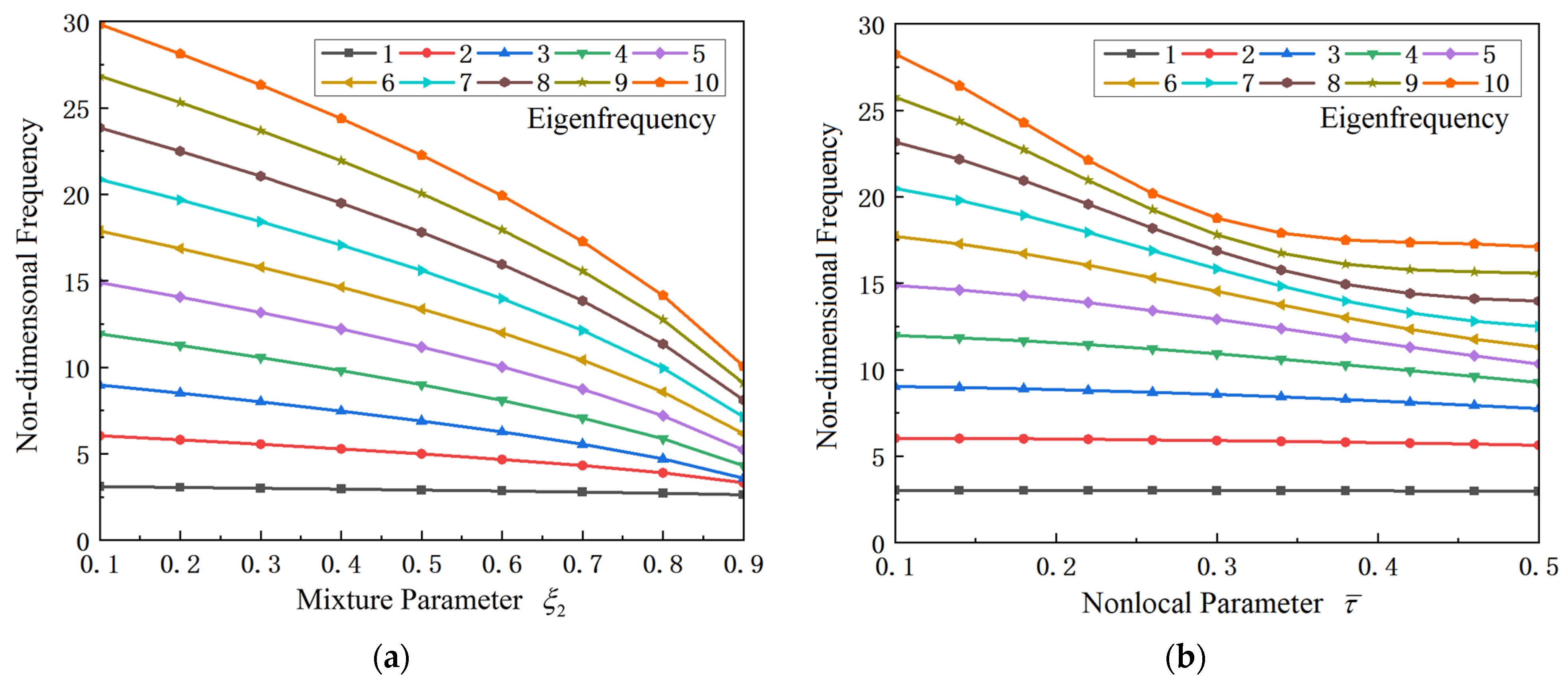 - The present method remains stable for higher-order eigenfrequencies in regimes where asymptotic formulas can deviate substantially and may even yield nonphysical artifacts (e.g., negative values) at larger nonlocal parameters.