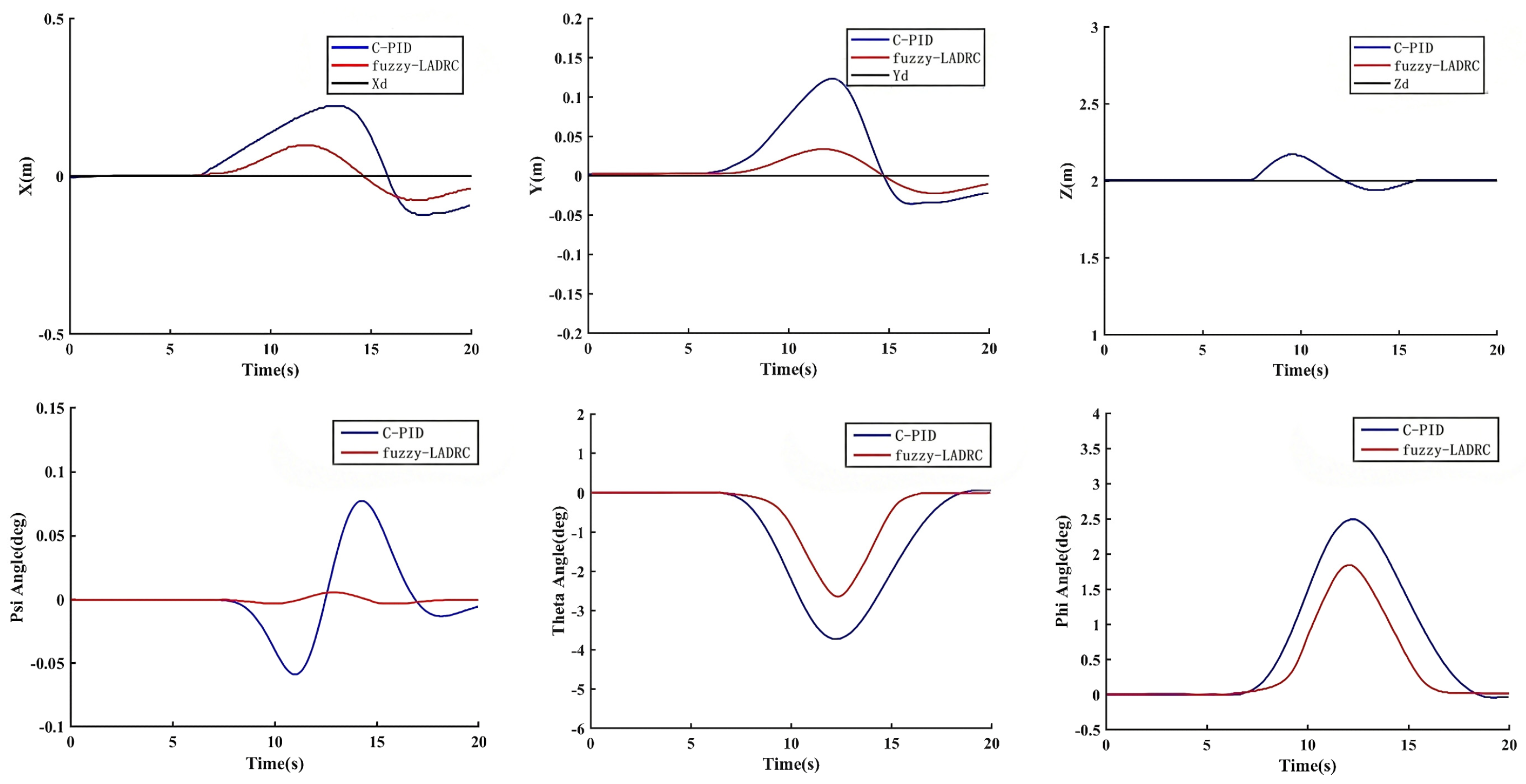 | Fuzzy-LADRC | −5.2° | 1.2° | negligible | almost none | |