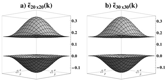 are the quasimomenta of the single particle Bloch states which are eigenfunctions of the maximal group of translations. It is also important to define , and R, which are the amount of cells in the absolute lattice and the corresponding parametrization (8), respectively. The functions are the Gaussian orbitals defined in Section 3.3. The searched HF orbitals will have the form