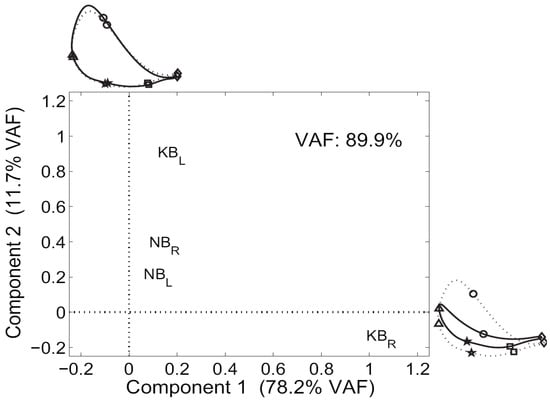 - Sadeghi, H.; Prince, F.; Sadeghi, S.; Labelle, H. Principal component analysis of the power developed in the flexion/extension muscles of the hip in able-bodied gait. Med. Eng. Phys. 2000, 22, 703–710. [Google Scholar] [CrossRef]