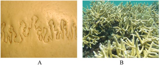 Fractal symmetry. A. Human skull suture. B. Staghorn coral (Bill Davin, Department of Biology, Berry College).