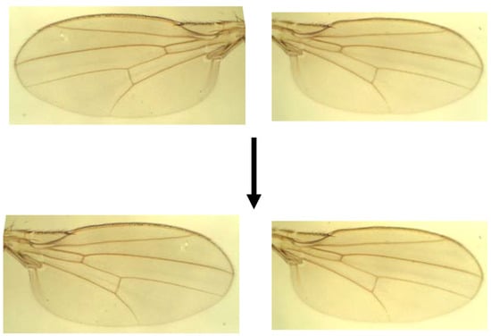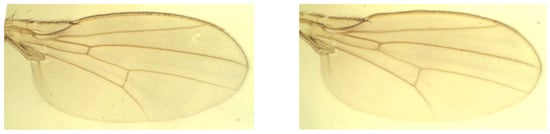 - Indrasamy, H.; Woods, R.E.; McKenzie, J.A.; Batterham, P. Fluctuating asymmetry for specific bristle characters in Notch mutants of Drosophila melanogaster. Genetica. 2000, 109, 151–159. [Google Scholar] [CrossRef] [PubMed]