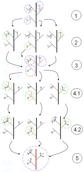 To quantify asymmetry of inconsistently symmetrical objects, Milner et al. [,] determined anchor points (in contrast to landmarks) on left and right sides of a bilateral structure, and used these as matching points. Since no geometric or structural consistency could be assumed, they introduced the idea of defining matching points, based on biological growth models, for Palestine oak (Quercus calliprinos) [].