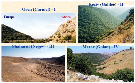 - Pavlíček, T.; Sharon, D.; Kravchenko, V.; Saaroni, H.; Nevo, E. Microclimatic interslope differences underlying biodiversity contrasts in “Evolution Canyon”, Mt. Carmel, Israel. Isr. J. Earth Sci. 2003, 52, 1–9. [Google Scholar] [CrossRef]