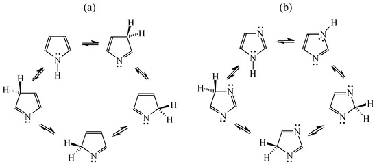 Tautomeric equilibria for azoles. (a) pyrrole; (b) imidazole.