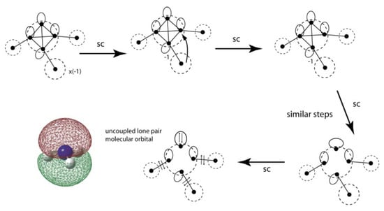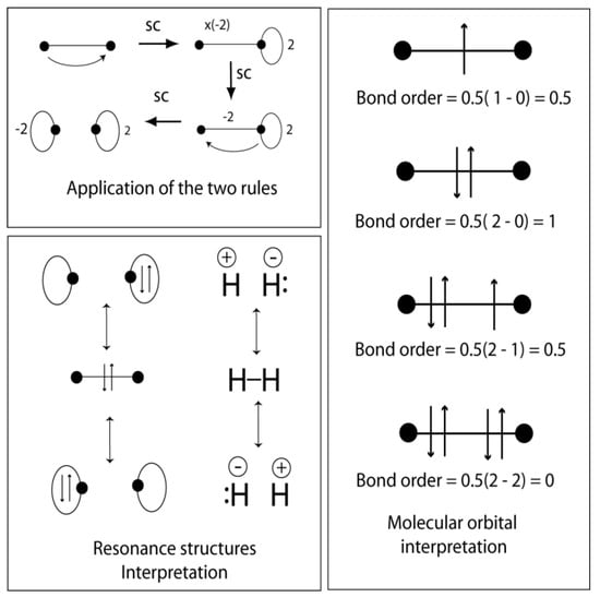 - Pauling, L. The nature of the chemical bond. II. The one-electron bond and the three-electron bond. J. Am. Chem. Soc. 1931, 53, 3225–3237. [Google Scholar] [CrossRef]