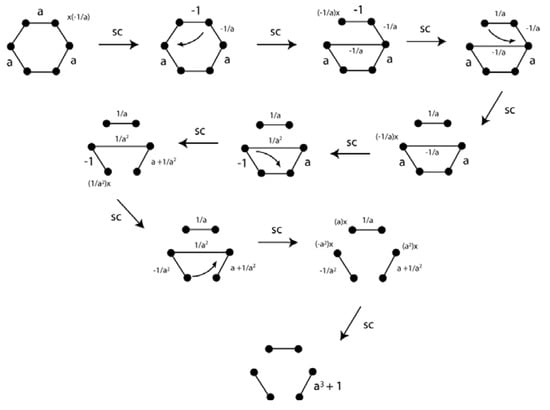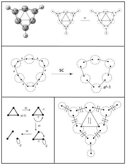 The reduction for the benzene π-system is shown in Figure 22. The third segment in the reduced bottom picture has strength of a3 + 1. This means that if a > −1, the picture indicates singlet state with three doubly occupied π-bonding orbitals. A wide range of values for a are possible for the benzene singlet state consistent with the π-distortivity of this molecule.