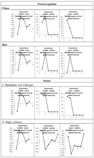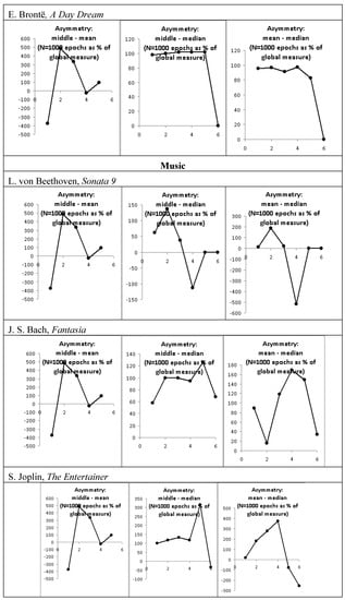 Histograms (figure 4) and Pareto histograms (figure 5) demonstrate asymmetry in the distribution of notes and letters in musical and literary texts. Statistical measures quantify asymmetry and demonstrate non-stationarity (figure 6 and Table 1).