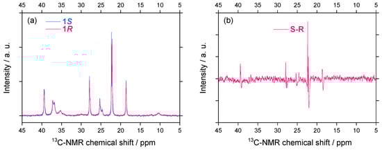 (a) 13C-NMR spectra of 1S (Mw = 31,400 and Mn = 17,400) and 1R (Mw = 30,100, Mn =20,000) in CDCl3 at 40 °C and (b) the difference spectrum between 1S and 1R.
