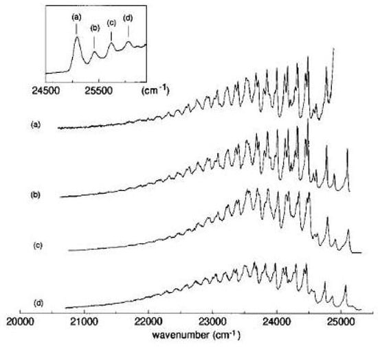 - Klingensmith, K.A.; Dewey, H.J.; Vogel, E.; Michl, J. Vibrational Structure of the 1Lb Transition of 1,6:8,13-Ethano[14]annulene. Transannular Interaction, the "Mystery Band", and the Kekule Vibration. J. Am. Chem. Soc. 1989, 111, 1539–1546. [Google Scholar] [CrossRef]