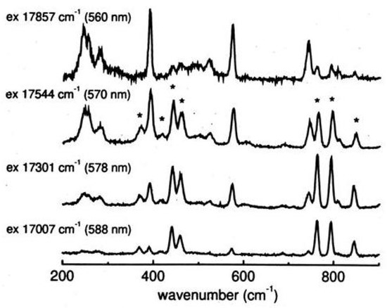 - Plus, R.; Lutz, M. Study of Band IV of Porphin by Resonance Raman Spectroscopy. Spectrosc. Lett. 1974, 7, 73–84. [Google Scholar] [CrossRef]