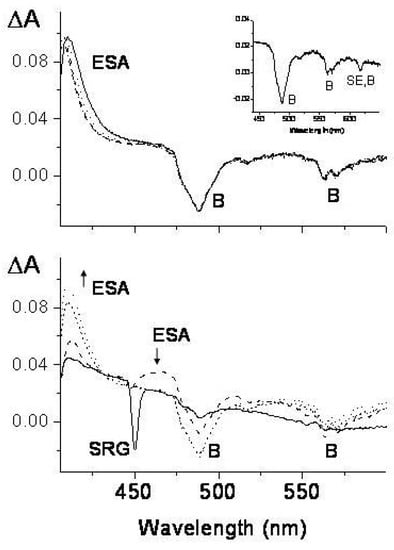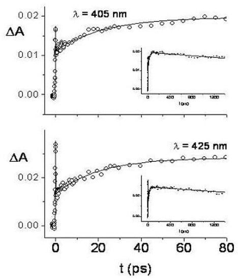 - Neuwhal, F.V.R.; Bussotti, L.; Foggi, P. Transient Absorption Spectroscopy with UV-Visible Sub-Picosecond Pulses; Global Research Network: Trivandrum, India, 2000; Volume 1, pp. 77–94. [Google Scholar]
