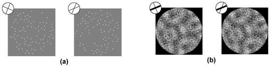 - Barlow, H.B.; Reeves, B.C. The versatility and absolute efficiency of detecting mirror symmetry in random dot displays. Vision Res. 1979, 19, 783–793. [Google Scholar] [CrossRef]